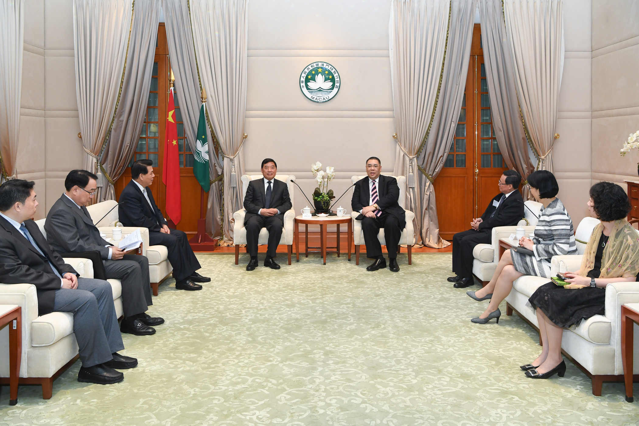 行政長官崔世安今(6)日上午在政府總部會見天津市政協主席臧獻甫一行,雙方就加強津澳合作和年青人的合作交流交換意見。