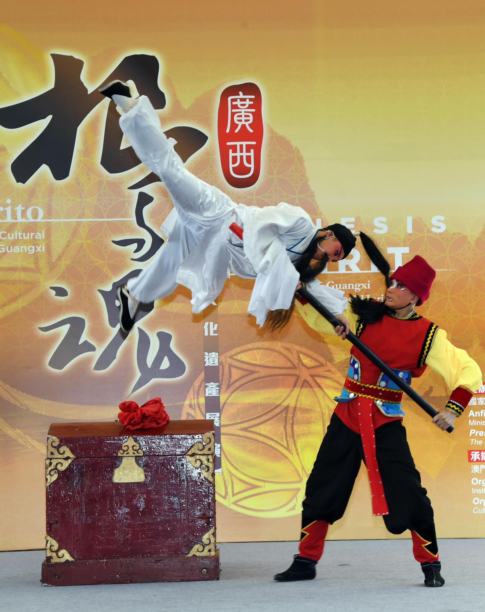 為慶祝二零一七年“中國文化和自然遺產日”、促進內地與澳門非物質文化遺產保護領域的合作和交流,並讓澳門市民更好地認識祖國深厚的文化底蘊及豐富的非物質文化遺產,由國家文化部與澳門特別行政區政府社會文化司主辦、澳門特別行政區政府文化局與廣西壯族自治區文化廳承辦的《根與魂─廣西非物質文化遺產展演》,於六月八日(星期四)下午五時在議事亭前地舉行盛大的開幕式。澳門特別行政區政府社會文化司司長譚俊榮、國家文化部副部長項兆倫、中央人民政府駐澳門特別行政區聯絡辦公室副主任薛曉峰、外交部駐澳門特別行政區特派員公署副特派員王冬、國家文化部港澳台辦公室副主任李健鋼、澳門特別行政區政府文化局局長梁曉鳴及廣西壯族自治區文化廳副廳長朱創偉出席主禮。 廣西壯族自治區風光旖旎、民族風情濃郁,其深厚的歷史底蘊和絢麗的民族傳統文化孕育出豐富的非物質文化遺產。廣西現有人類非物質文化遺產代表作一項,國家級非遺代表性項目五十項,自治區級非遺代表性項目五百八十三項。是次系列活動將為本澳市民展示具地方特色的傳統工藝,包括繡球、蠟染、六堡茶、馬尾繡等製作工藝,並透過精彩的舞台演出向觀眾展現桂劇、馬骨胡藝術、壯族歌圩習俗等多項廣西的非遺項目,機會難逢。