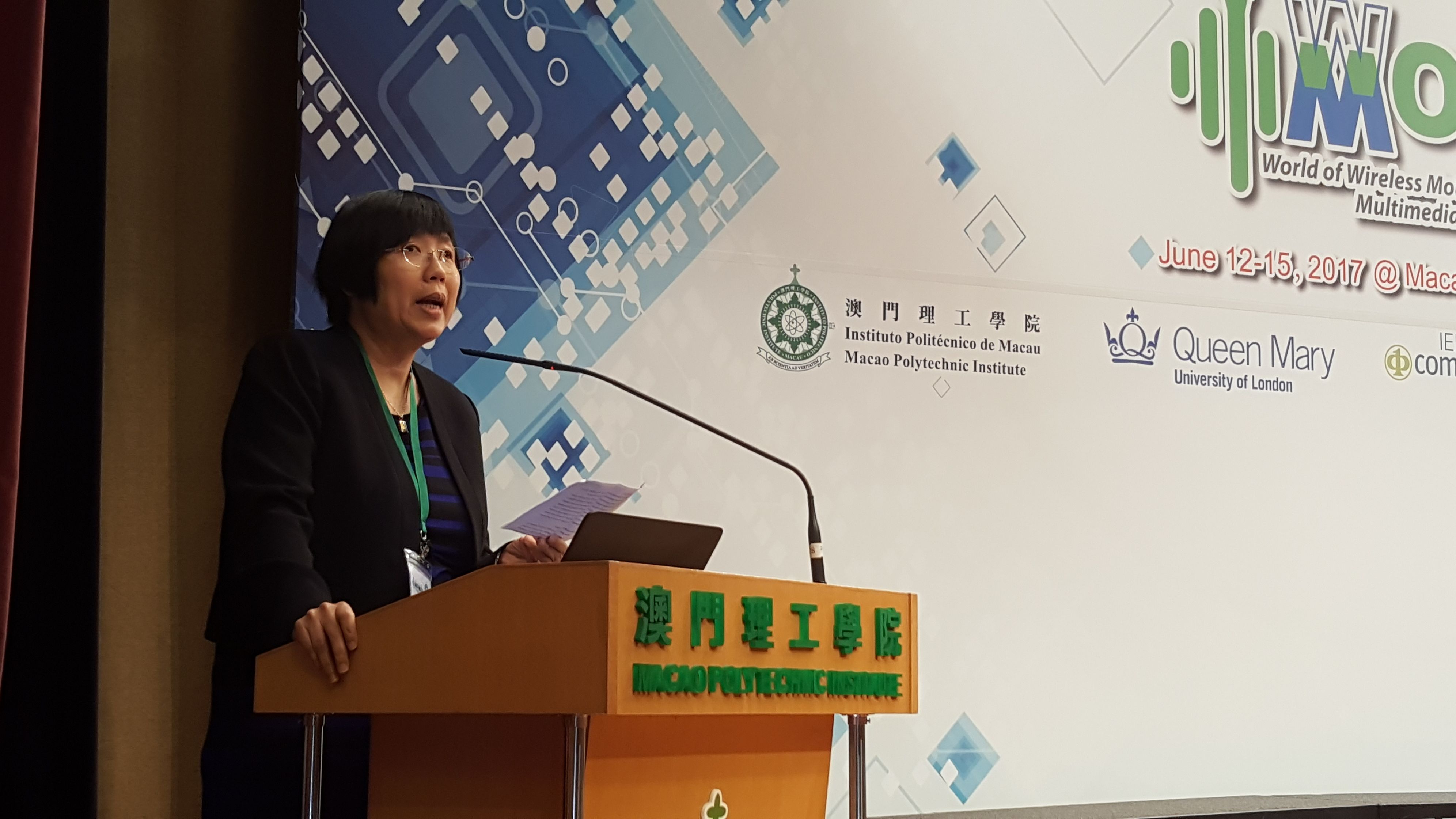 第十八屆“IEEE 無線、移動和多媒體網絡國際研討會"(World of Wireless, Mobile and Multimedia Networks, WoWMoM)於6月13日在澳門理工學院隆重開幕,來自26個國家地區、71所大學和研究機構,共130多名學者匯聚澳門,共同探討世界科技及學術前沿發展。研討會涵蓋無線通訊、物聯網、大數據及智慧城市領域的多個技術層面,主辦單位希望透過合辦是次研討會,促進澳門的科技及學術發展、向世界展示澳門在資訊科技方面的實力,從而提升在無線通訊、網絡技術與移動、多媒體網絡、智慧城市等方面的科研水平。