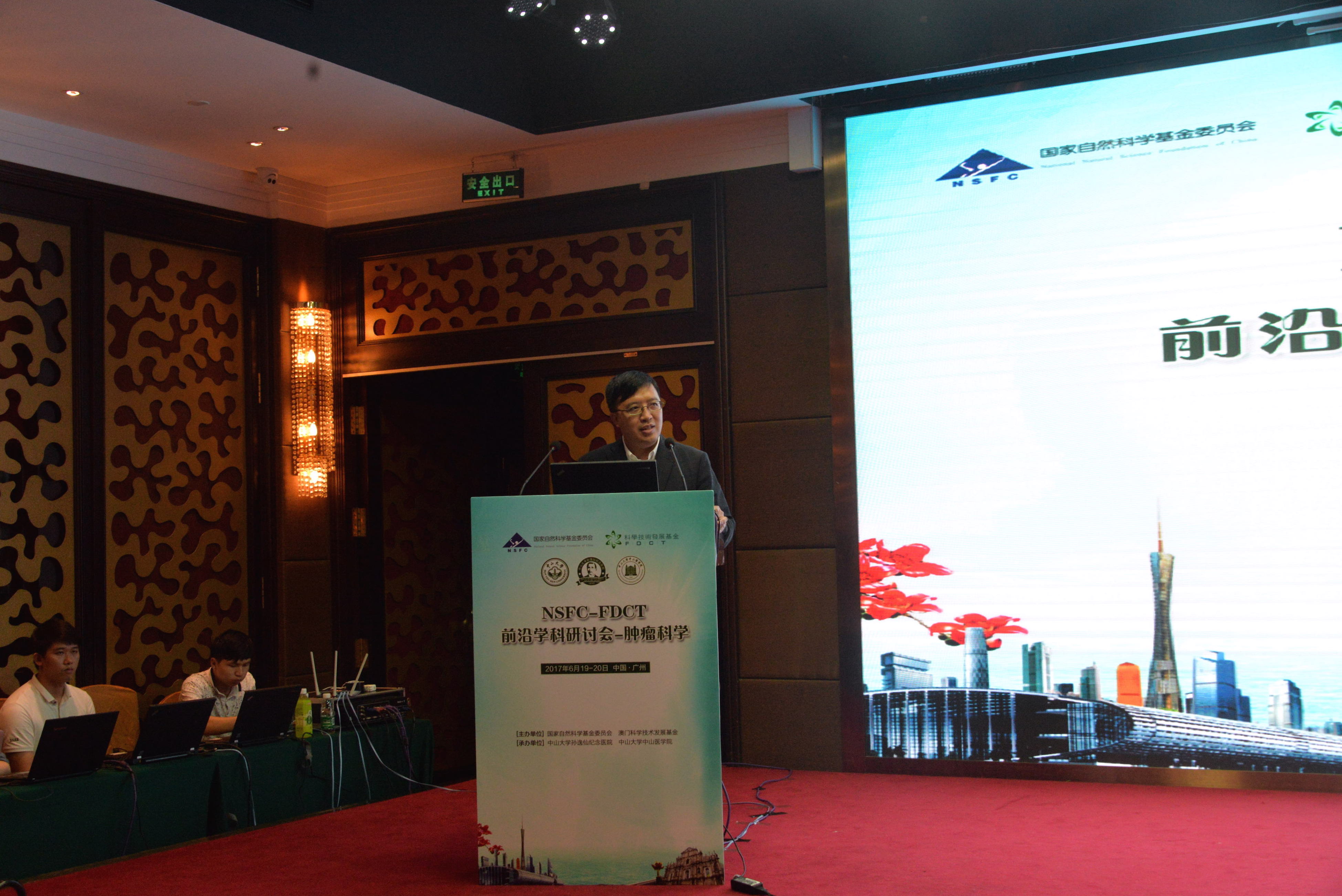 鄒立堯主任致辭時表示,基金委一直以來很重視與科技基金的合作,雙方目前在聯合科研資助、合辦研討會、人員交流、評審項目等方面都有合作,並還在一直探索研究推出新的合作計劃,不斷拓展合作領域,推動兩地科技的共同繁榮與進步。肖海鵬副校長致辭歡迎各地的優秀學者齊集中山大學共同探討腫瘤的前沿研究,表示中山大學與澳門學術界及醫護界長期以來合作密切,希望兩地可以繼續深化合作。