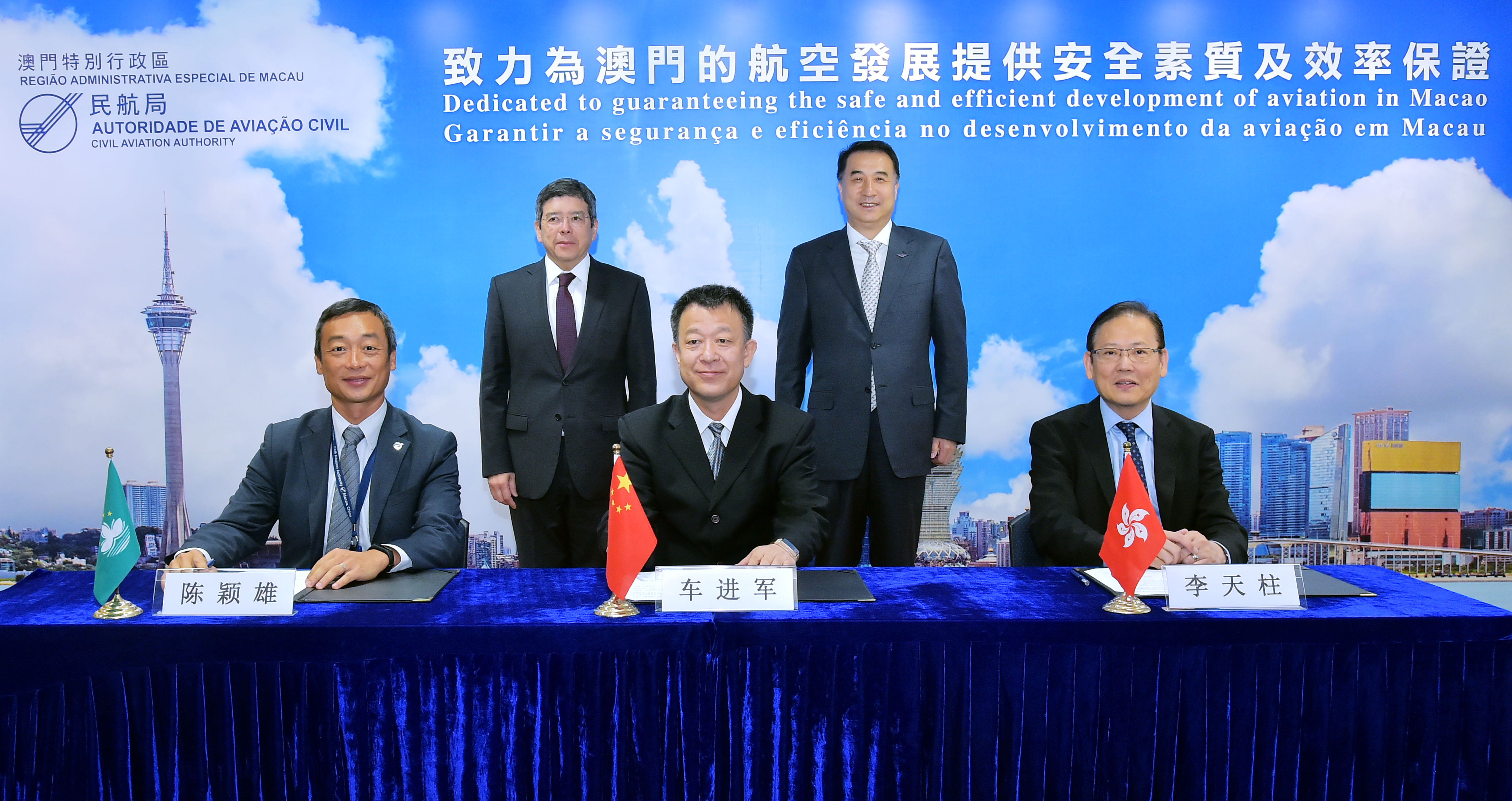 簽署儀式於上午十一時三十分在澳門特別行政區民航局辦事處舉行,代表三地簽署備忘錄分別是中國民用航空局空中交通管理局局長車進軍、澳門特別行政區民航局局長陳穎雄和香港特別行政區民航處處長李天柱。澳門特別行政區運輸工務司司長羅立文和中國民用航空局副局長董志毅以主禮嘉賓見證了文本的簽署。