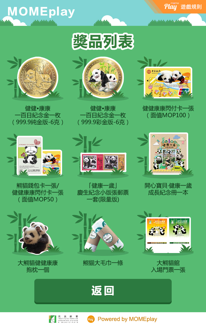 民政總署與大熊貓基金合作舉辦之“健康一歲開心賞”手機微信遊戲,至今已有五萬五千人中獎,遊戲將於七月十六日結束,歡迎市民把握機會踴躍參與。