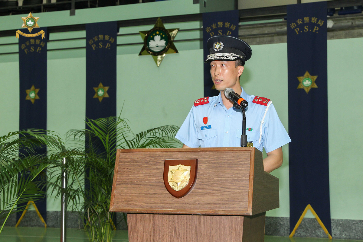 今天(07月19日)中午12時,在治安警察局特警隊大樓內為新入職警員舉行就職典禮。儀式由治安警察局代局長黃子暉副警務總監及代副局長劉運嫦警務總長主持,各部門主管均有出席,並為新警員戴上襟章。