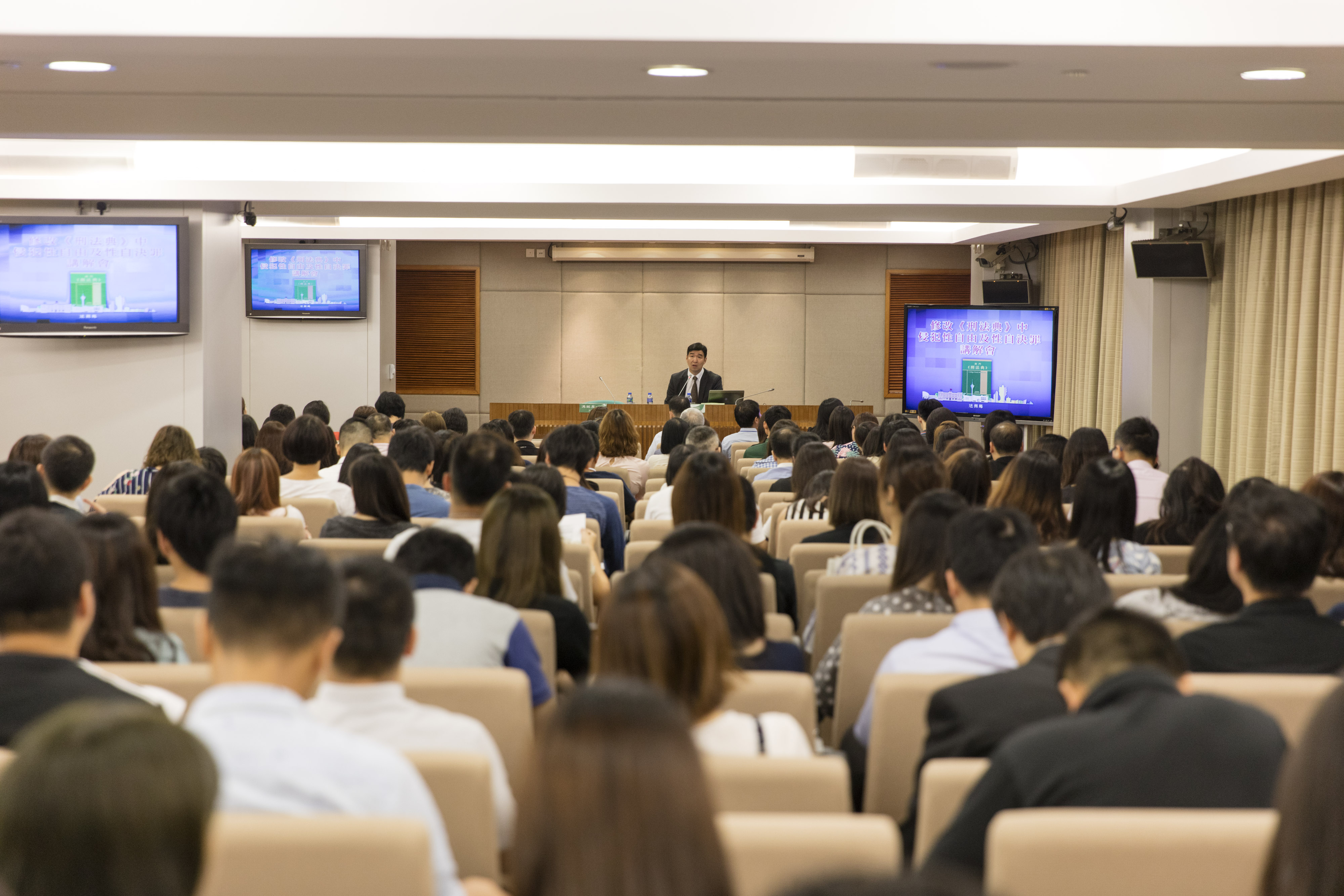 為使前線執法人員深入了解立法原意,加強執法成效;讓社會工作、教育部門相關範疇的人員加深對有關法律的認識,正確運用有關規定,法務局、司法警察局、治安警察局、社會工作局、教育暨青年局及高等教育輔助辦公室等部門於6月30日至7月17日期間先後合作舉辦了三場《修改〈刑法典〉》新規定的講解會,執法、社會工作和教育範疇超過440位前線人員出席。另外,為讓廣大市民加深了解和認識《修改〈刑法典〉》的新規定的具體內容,提高和加強對未成年人保護,以達至預防和遏止有關性犯罪的發生,法務局於7月12日與婦女聯合總會合作,舉辦了一場公眾講解會,參與講解會的市民超過70人。