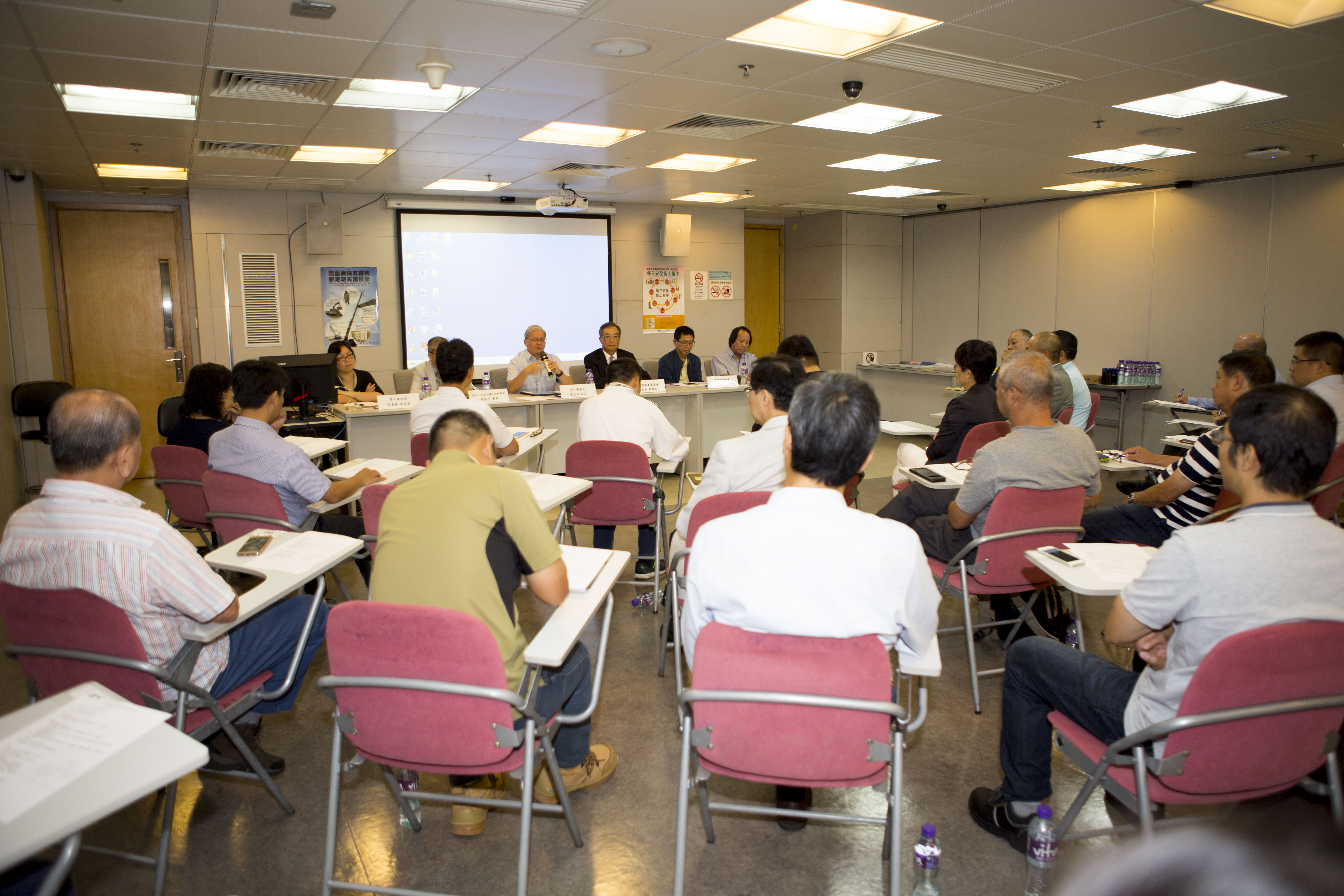 勞工事務局今(20日)與澳門建築置業商會、澳門建造商會、澳門建築機械工程商會以及澳門土木及結構工程師學會四個團體約三十人舉行座談會,繼續就完善職安健工作交換意見,雙方日後會共同透過恆常溝通機制,定期就職安健工作進行交流。局長黃志雄強調,勞工局會繼續恪守嚴格監管建築業的職安健情況,而在處理停工工地的復工申請時,勞工局會按序詳細檢查停工工地的整體改善情況和安全措施。