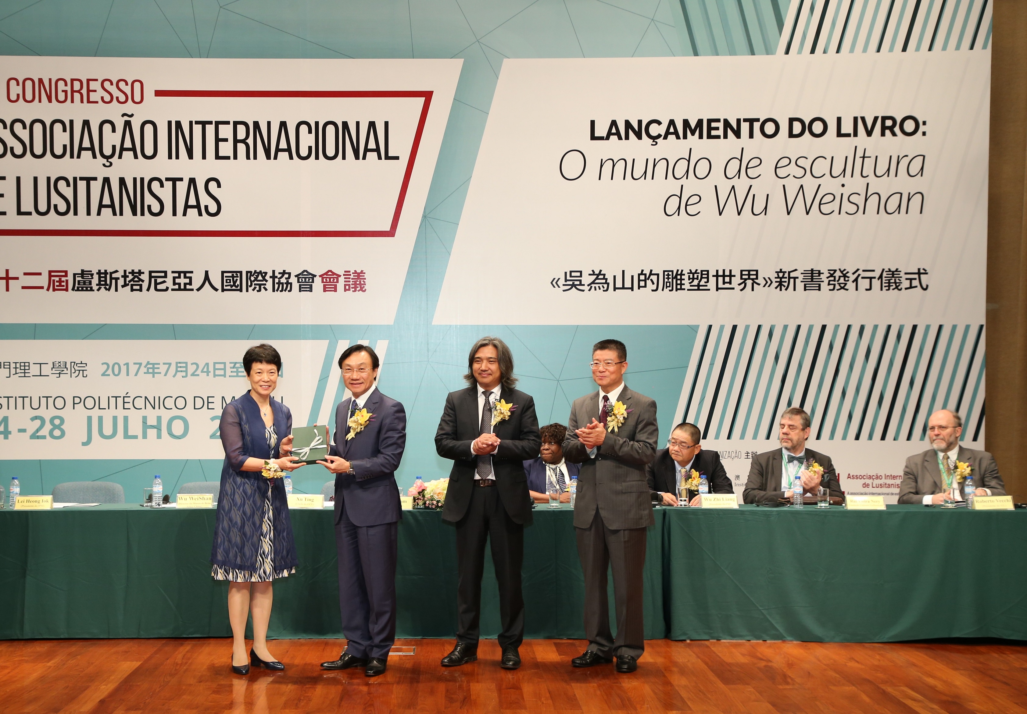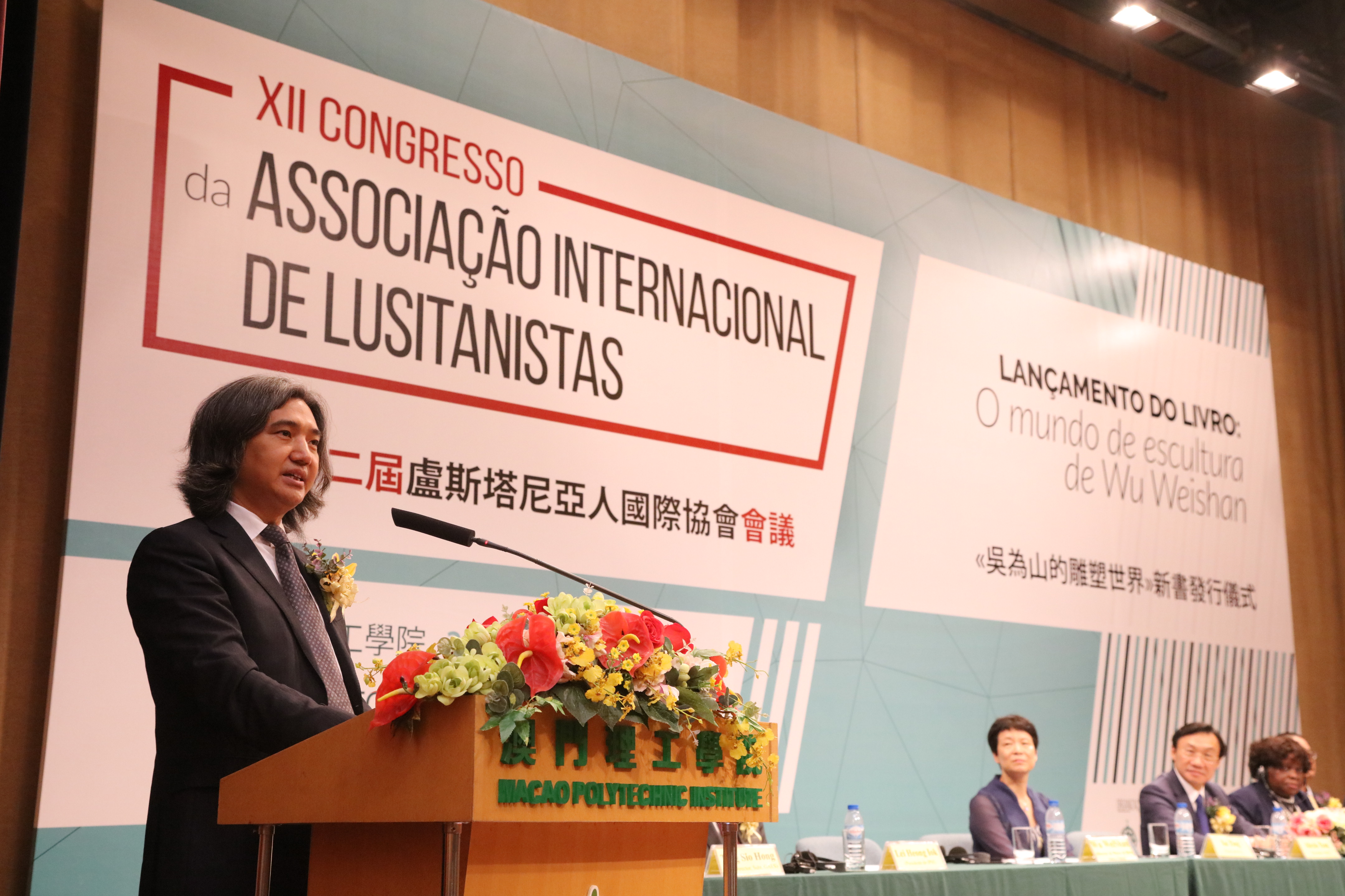 “第十二屆盧濟塔尼亞人國際協會會議”於7月24日在澳門理工學院舉行開幕儀式,承辦的澳門理工學院在開幕儀式上,同場舉辦《吳為山的雕塑世界》葡文本新書首發和贈書儀式,由社會文化司司長譚俊榮、盧濟塔尼亞人國際協會主席羅伯特・沃琪、理工院長李向玉、中國美術館館長吳為山主禮,與會嘉賓和專家學者約二百人,共同見證了這個葡語推廣和文化交融的盛會。