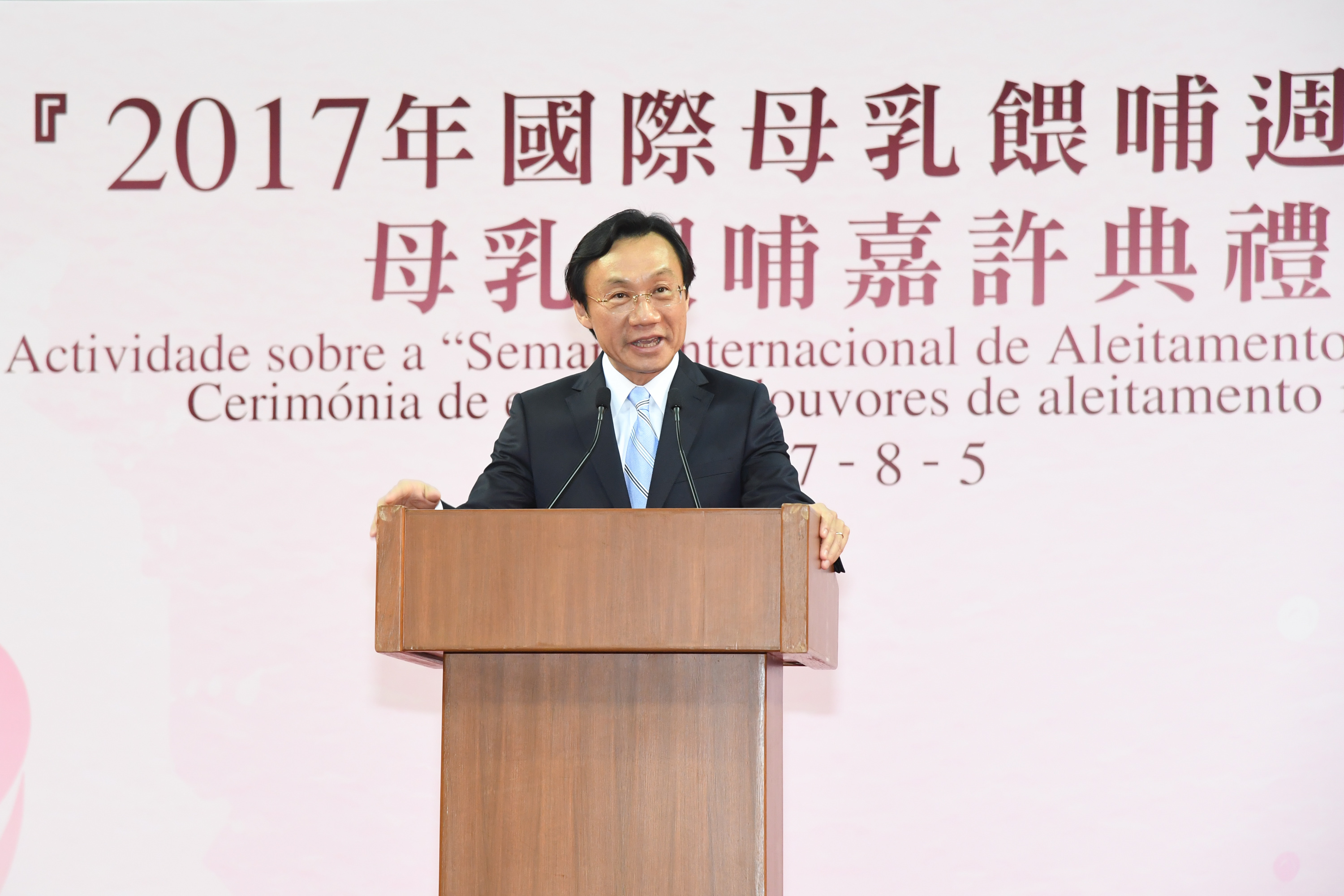 譚俊榮司長在致辭時特別感謝參與活動的公、私營機構,及持續以母乳餵哺嬰兒的媽媽。他表示,當局已是第二年舉辦“母乳餵哺嘉許典禮 ”,活動得到社服機構的支持,更有600個以上的家庭報名參與活動,意義重大而深遠。他指出,為響應世界衛生組織(WHO)的呼籲,支援婦女們外出時能夠隨時哺乳,自2016年初開始,社會文化司率先鼓勵轄下部門設立母乳餵哺室,至今本澳公、私機構已設立超過100間母乳餵哺室。衛生中心由媽媽懷孕至產後均提供一系列的推廣及支援,透過海報、小冊子及電視媒體向全澳市民進行宣傳推廣。哺乳媽媽亦可在“衛生局資訊站-母乳資料”中隨時查閱相關資訊。此外,仁伯爵綜合醫院亦特別加強了產後早期“母嬰肌膚接觸”的安排,鼓勵及推動哺乳的開始。當局將繼續鼓勵各機構成為“母乳餵哺友善工作間”,希望透過機構政策支援及員工的協助,讓所有在職婦女實現持續母乳哺育嬰兒的願望。而經過近年大力度的推廣,根據衛生局的資料顯示,2016年出生嬰兒曾以母乳餵哺的比率超過九成二,較2015年提升4%;而2016年出生嬰兒以純母乳餵哺至4個月或以上的比率超過兩成,以純母乳餵哺至6個月或以上的,人數亦有上升趨勢,顯示母乳推廣工作成績理想。