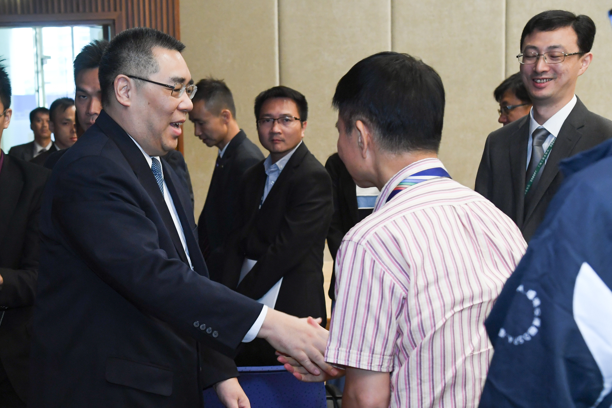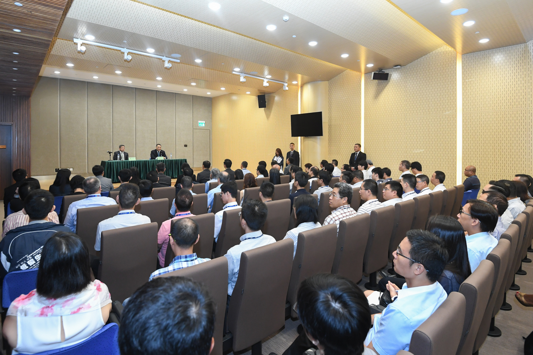 陪同行政長官出席座談會的還有運輸工務司司長羅立文、行政長官辦公室主任柯嵐。運輸工務領域的12個部門的領導主管及部分工作人員約160人參加了座談會。