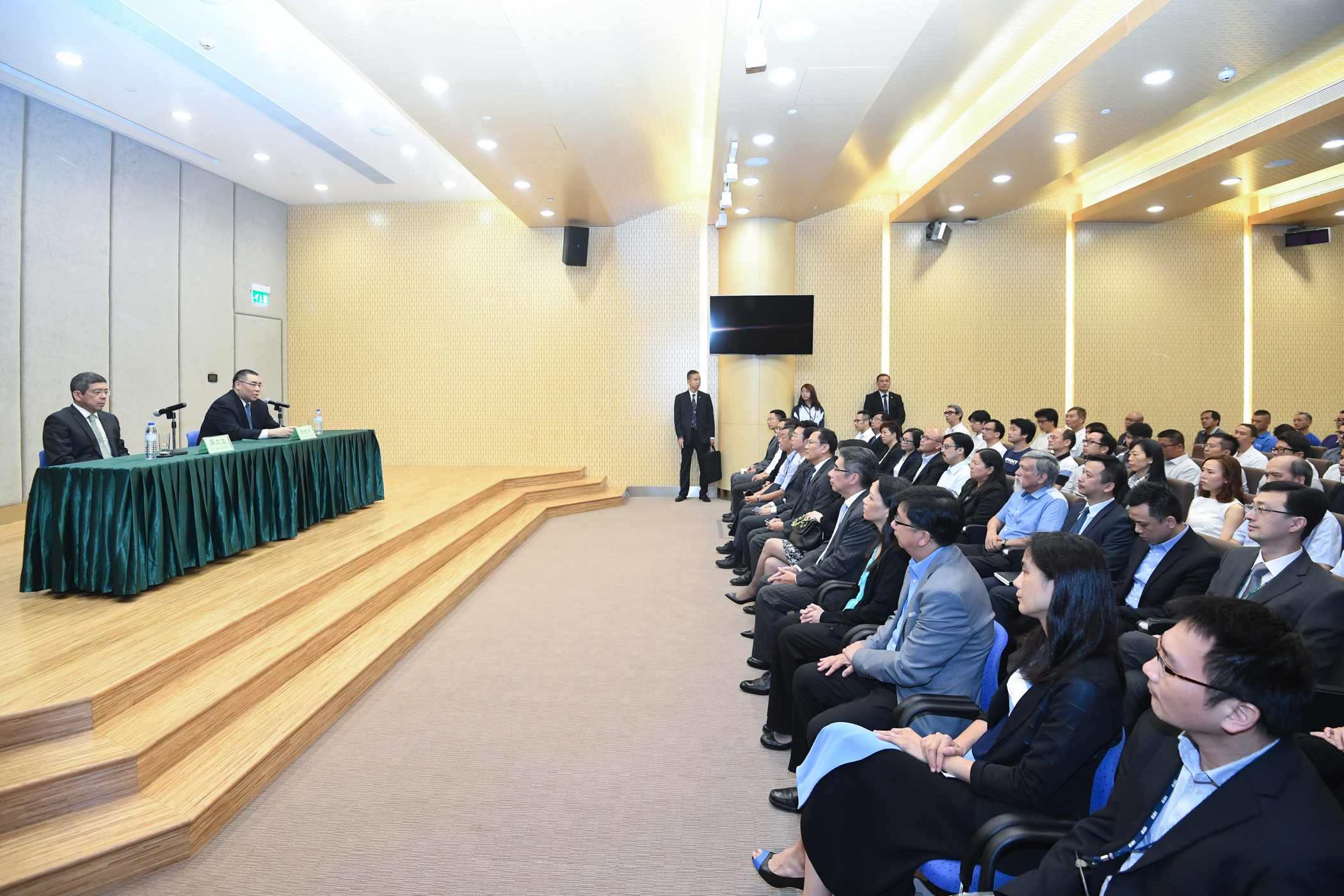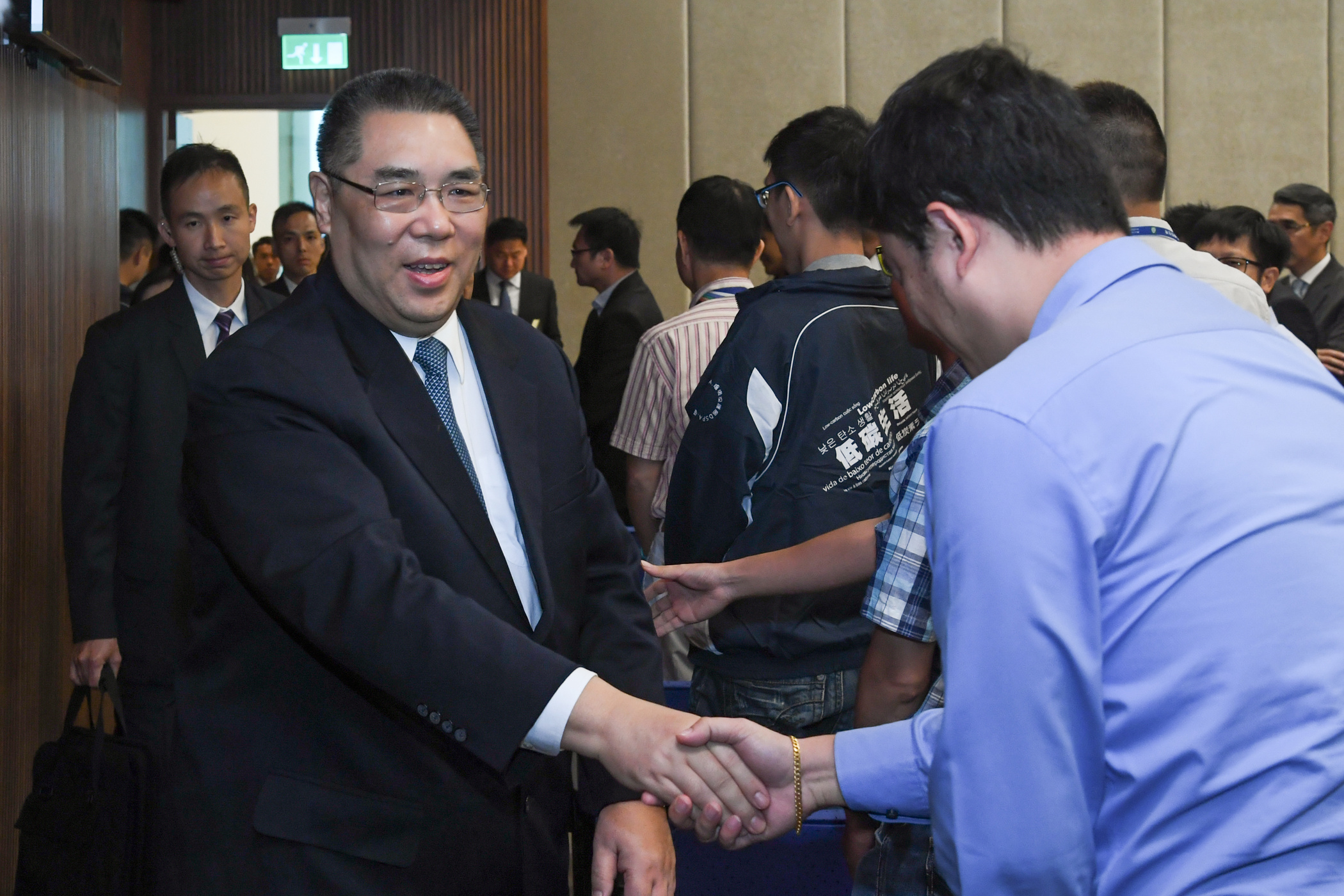 陪同行政長官出席座談會的還有運輸工務司司長羅立文、行政長官辦公室主任柯嵐。運輸工務領域的12個部門的領導主管及部分工作人員約160人參加了座談會。