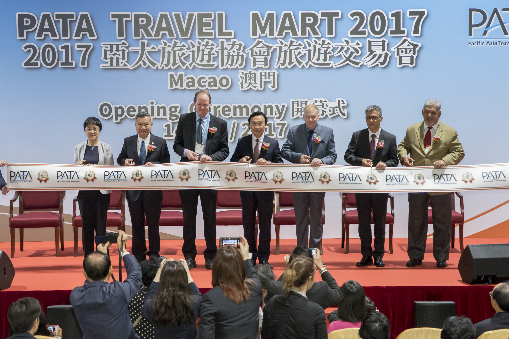 2017亞太旅遊協會旅遊交易會今天(14日)正式在澳門掀開序幕,開幕儀式由澳門特別行政區政府社會文化司司長兼2017亞太旅遊協會旅遊交易會籌組委員會主席譚俊榮主持。由亞太旅遊協會(PATA)主辦的亞太旅遊協會旅遊交易會為亞太地區的年度重點旅遊展會。今屆交易會踏入40周年,由澳門特別行政區政府旅遊局承辦,吸引來自66個目的地逾1,130位旅遊專業人士蒞臨澳門出席。