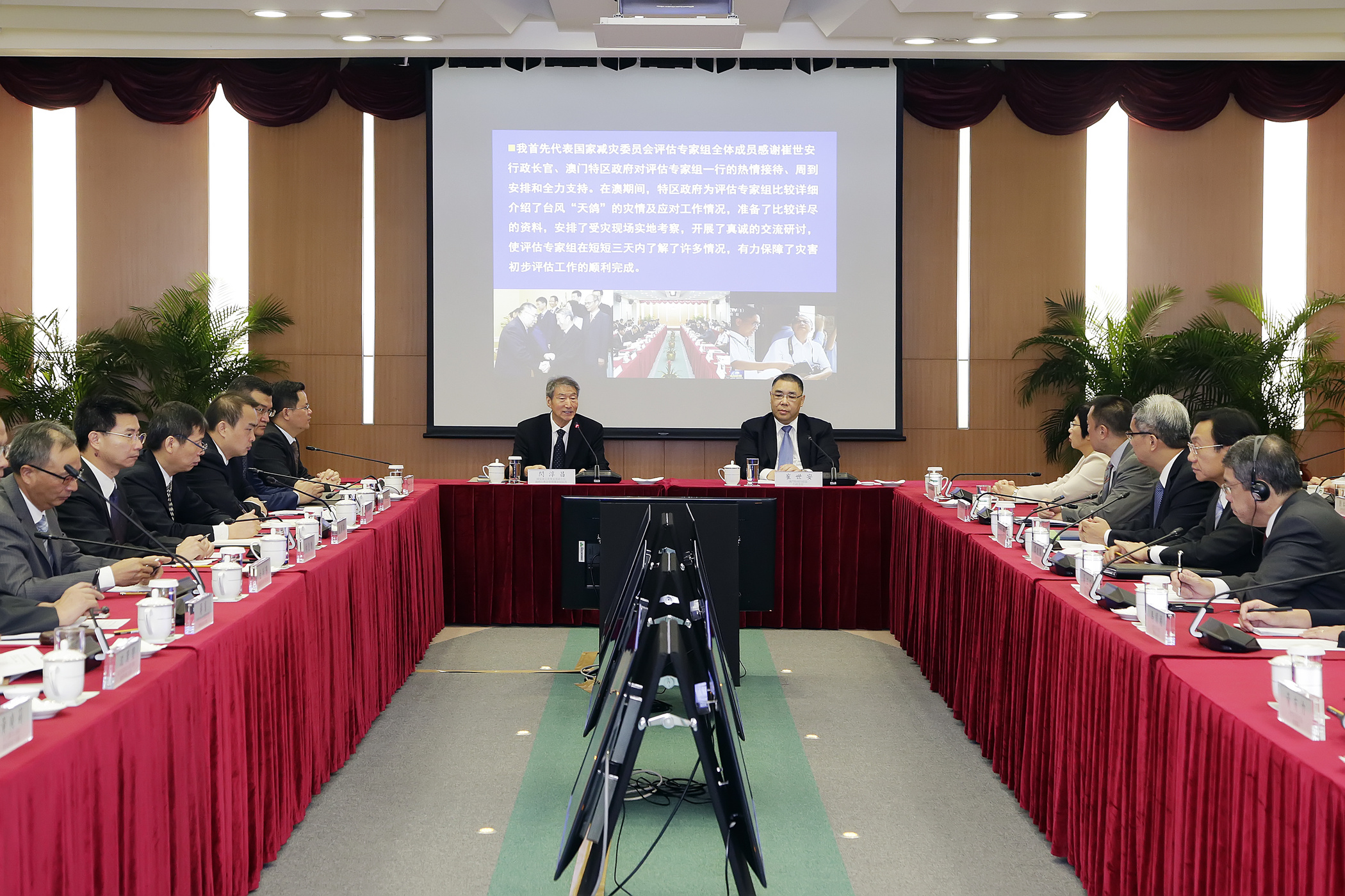 在聽取初步匯報後,行政長官感謝國家減災委員會專家團隊在短短幾天時間內不辭勞苦,聽取部門報告和實地考察,並且高效、專業地總結了初步報告。他認為,報告既有對特區政府工作的肯定,也對部分工作提出了改善的意見及建議,內容充實且具有指導性,值得特區政府各部門認真學習、積極落實和加以改善。政府會從全域出發,以整個特區的利益為依歸,盡力回應社會對特區政府的要求。