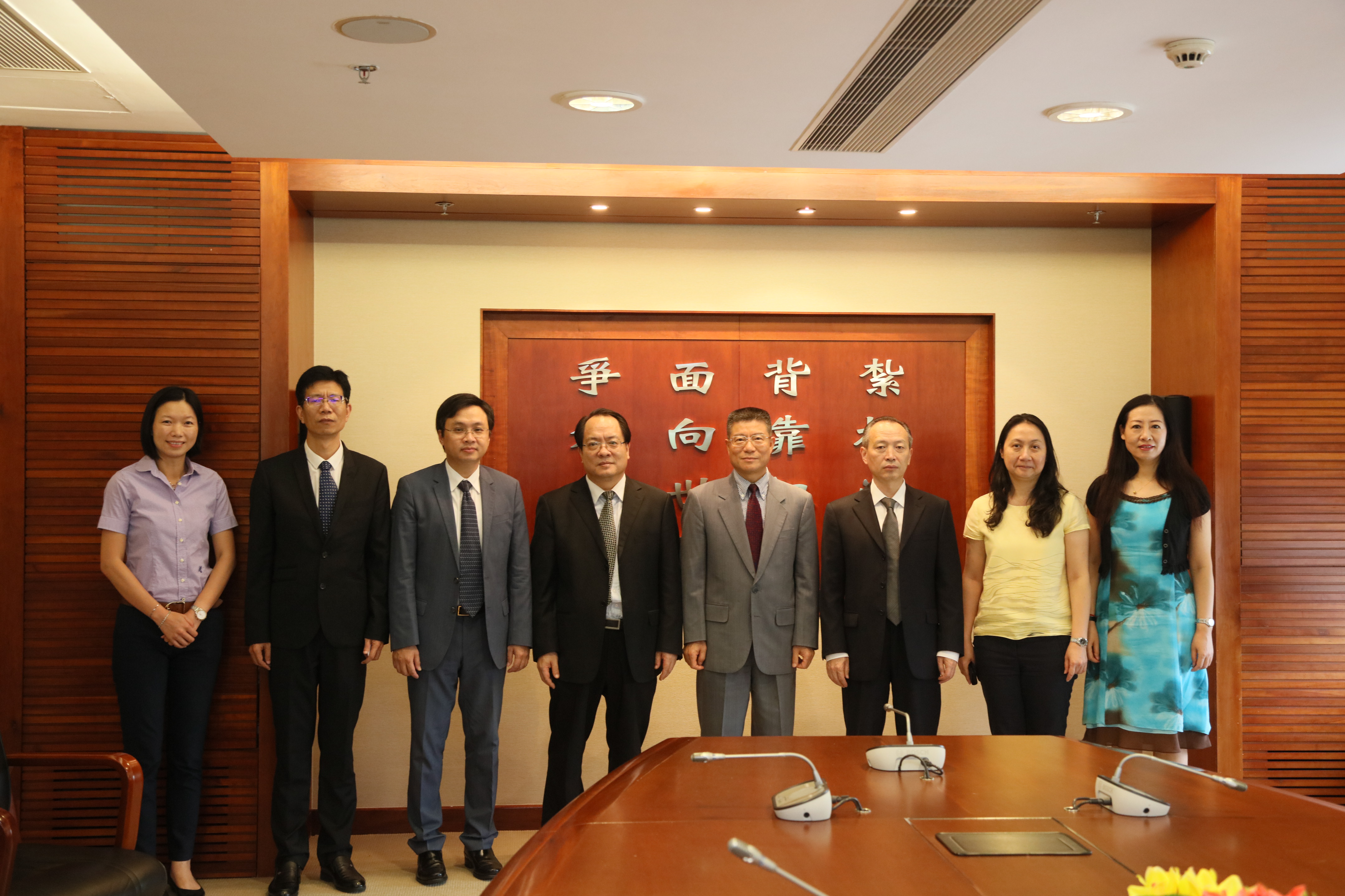 中華人民共和國外交部駐澳門特別行政區特派員公署一行五人,在即將卸任的副特派員潘雲東的帶領下,於九月十四日下午到訪澳門理工學院,受到院長李向玉等理事會成員的熱情接待,雙方進行了熱情友好的座談。