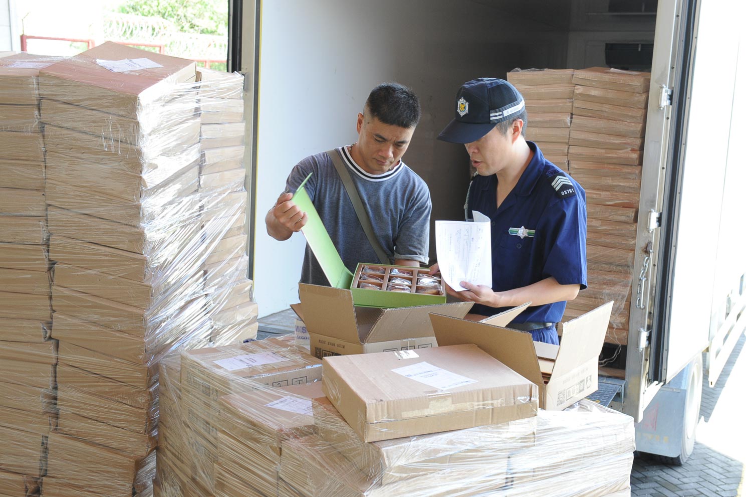 傳統佳節中秋將至,正值應節月餅銷售旺季,經濟局聯同廣東出入境檢驗檢疫局及南沙出入境檢驗檢疫局,利用南沙自貿區創新政策優勢,以跨境電商的貿易方式作突破口,先行先試檢驗檢疫便利措施,為本澳中小企出口月餅往內地創造便利條件,載着近1,500盒澳門製造月餅及應節餅食的貨車,今(25日)在澳門蓮花口岸鎖上綠色關鎖,以跨境電商貨物形式在南沙口岸清關,送往廣州、長沙及上海等地的消費者手中。