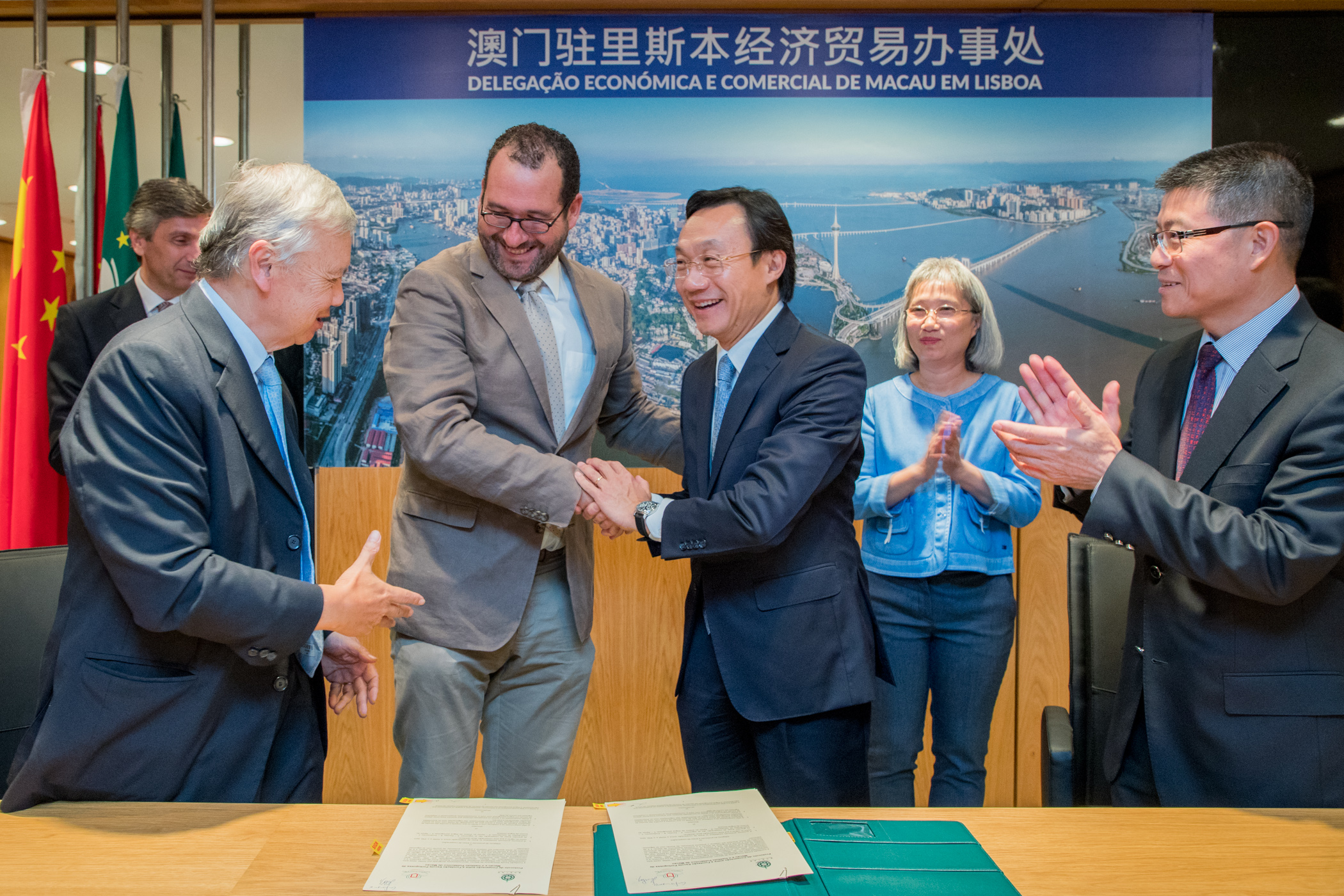 澳門理工學院與澳門葡文學校基金會合作為中國內地部份的中小學開展葡萄牙語教學,於日前(九月二十日)在葡葡牙澳門駐里斯本經濟貿易辦事處舉行了合作協議書簽署儀式,協議書由理工院長李向玉和澳門葡文學校基金會主席Roberto Carneiro共同簽署,澳門特區政府社會文化司司長譚俊榮和葡萄牙教育國務秘書João Costa 見證。