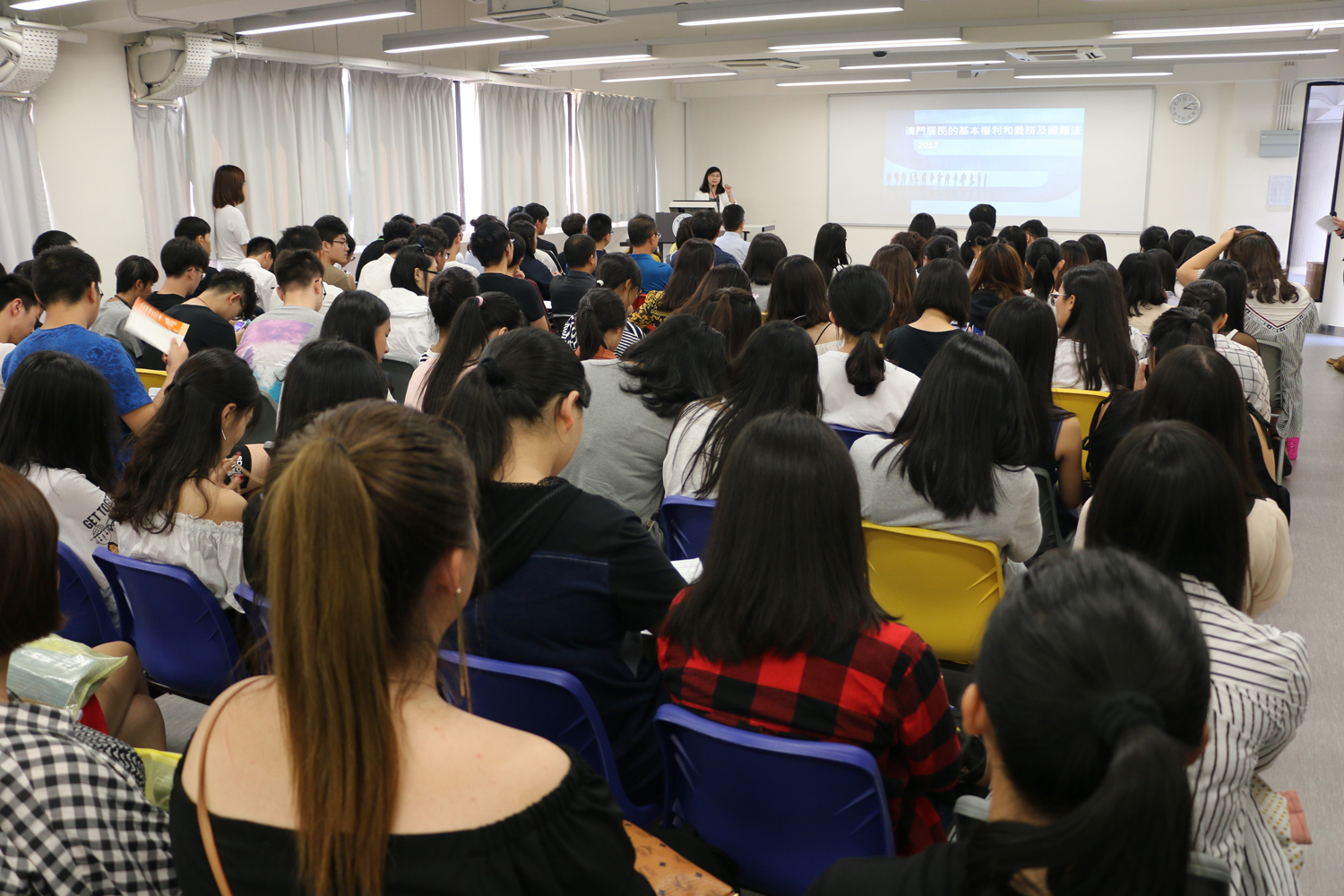為加強本澳大專學生對澳門居民的基本權利和義務、國籍法及領事保護與領事服務的認識,外交部駐澳門特別行政區特派員公署、身份證明局與澳門城市大學於2017年9月27日在澳門城市大學合辦“澳門居民的基本權利和義務、國籍法及領事保護與領事服務”專題講座,向學生推廣相關資訊。
