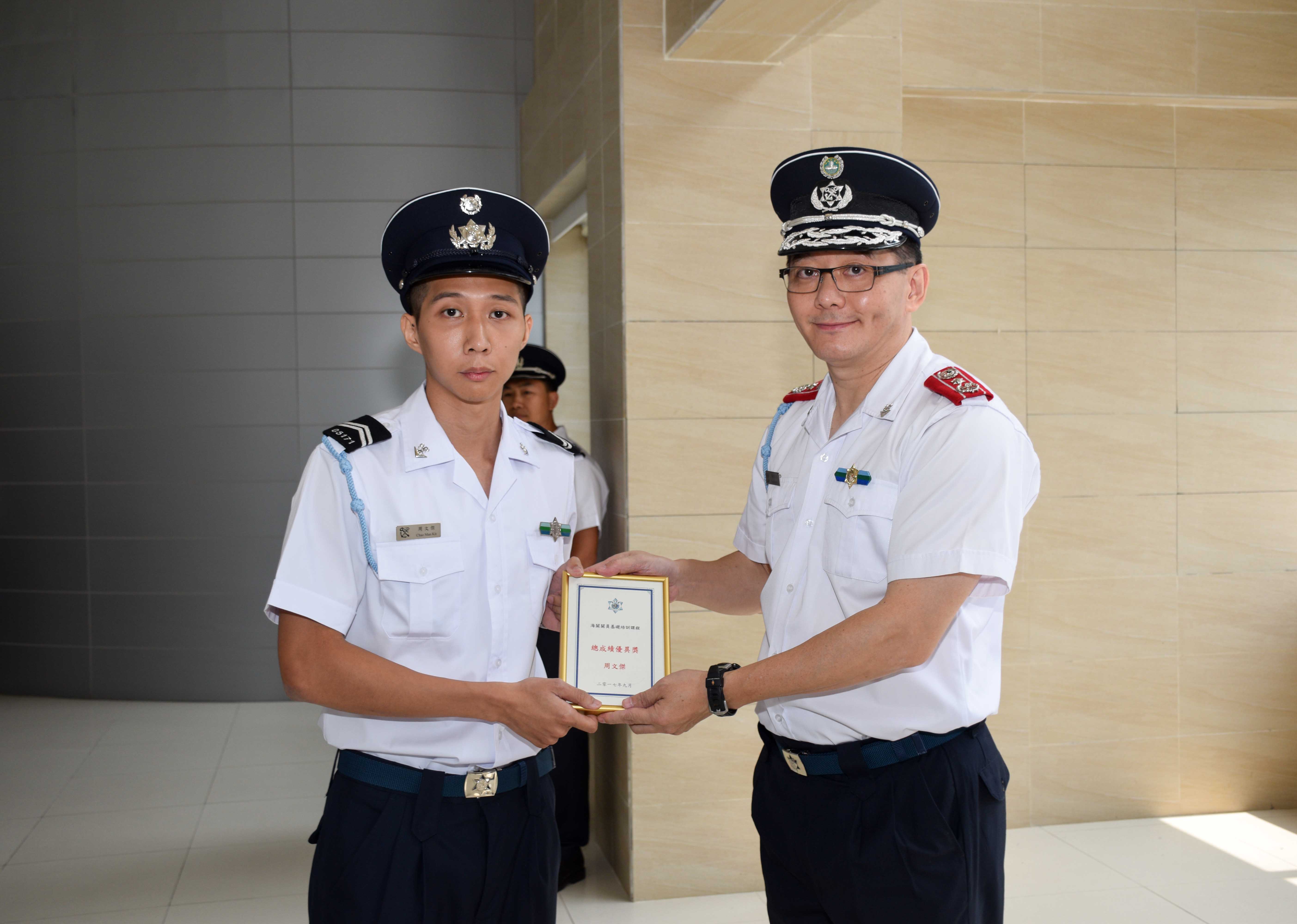 澳門海關於今日(28日)上午在青洲海上監察廳大樓舉行關員入職儀式,是屆完成培訓課程並畢業的學員共有35人,包括32男3女,當中26人持有學士學位或更高學歷。
