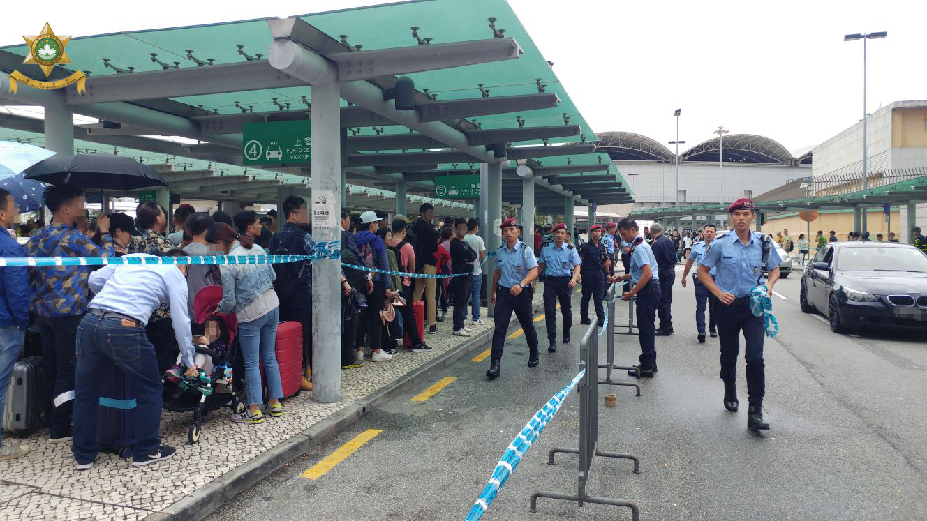 今日(15日)"卡努"颱風來臨,治安警察局已即時派出人員到各出入境口岸周邊維持交通秩序以及加強打擊的士違規及「白牌車」行動,確保市民及旅客的生命和財產安全以及保障消費者權益。