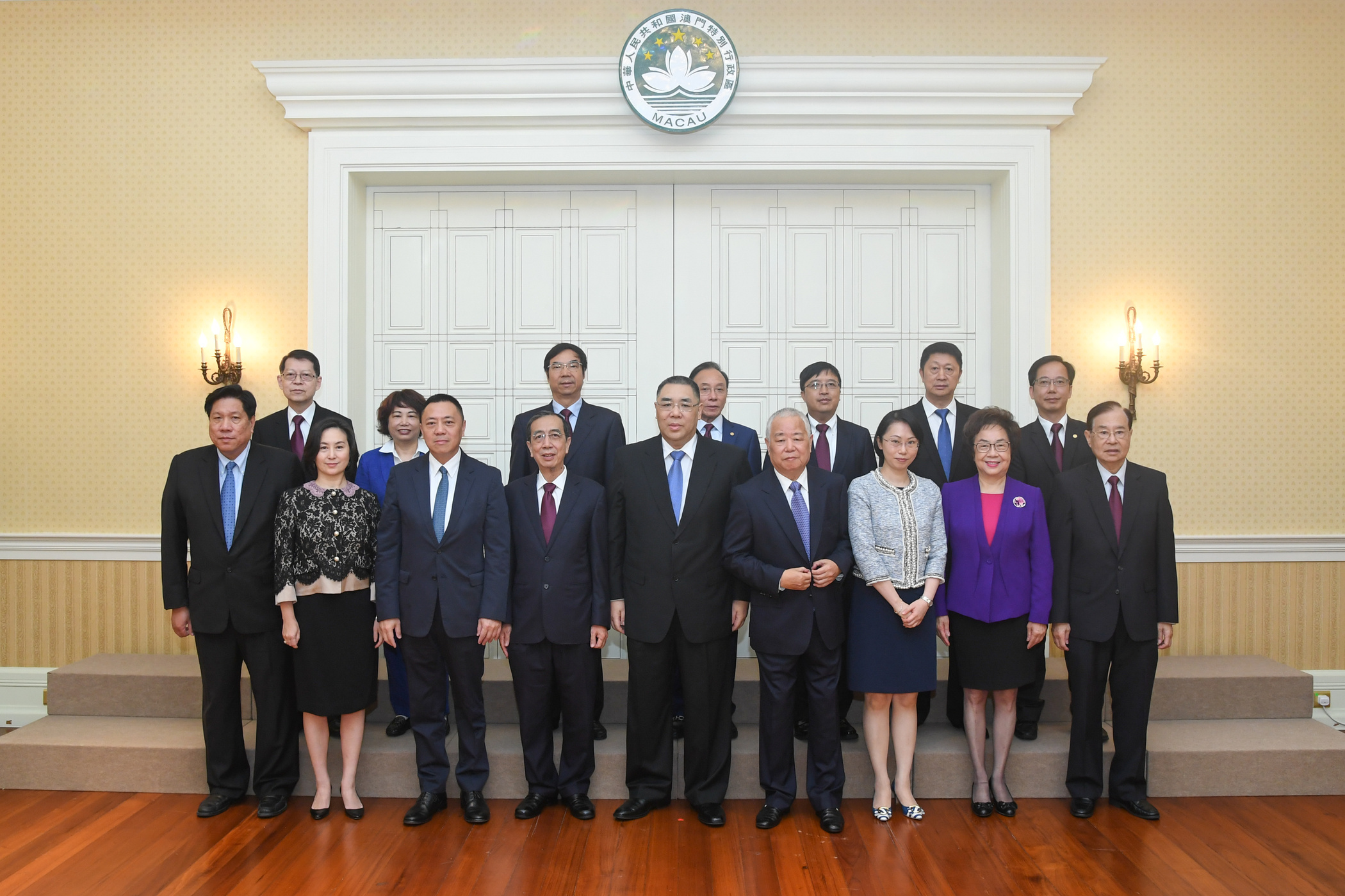 參加會見的還包括行政長官辦公室主任柯嵐、政策研究室主任劉本立、行政長官辦公室顧問胡根、李雁玲及鄧安琪、政策研究室首席顧問米健及副主任吳海恩;澳門中華總商會副會長顏延齡、副理事長賀定一、李志忠、何佩芬、何富強、秘書長區榮智等。
