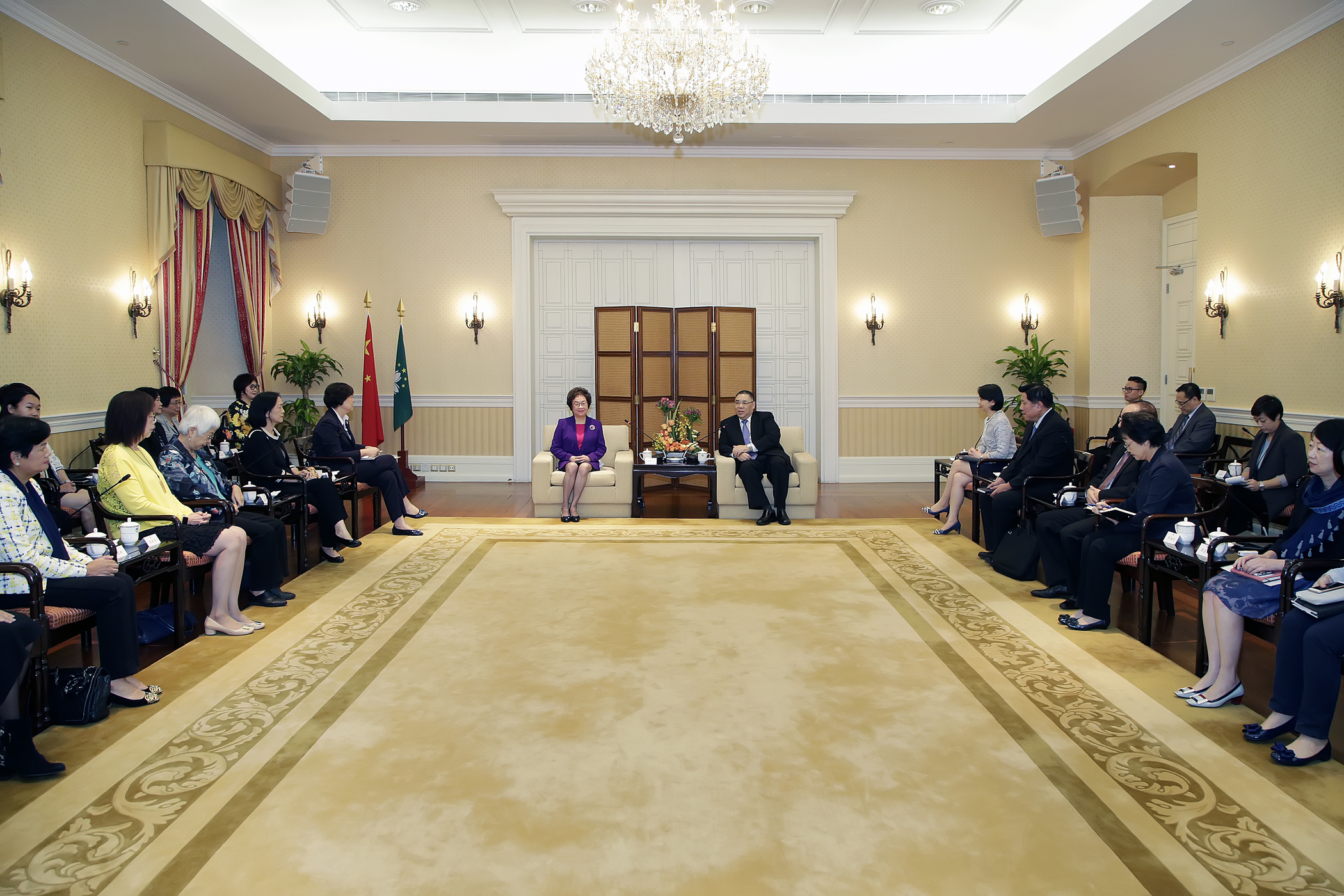 參與會見的包括行政長官辦公室主任柯嵐、政策研究室主任劉本立、行政長官辦公室顧問胡根、李雁玲及鄧安琪、政策研究室首席顧問米健及副主任吳海恩;澳門婦女聯合總會副會長林笑雲、招銀英、黃潔卿、盧德華和劉金玲等。