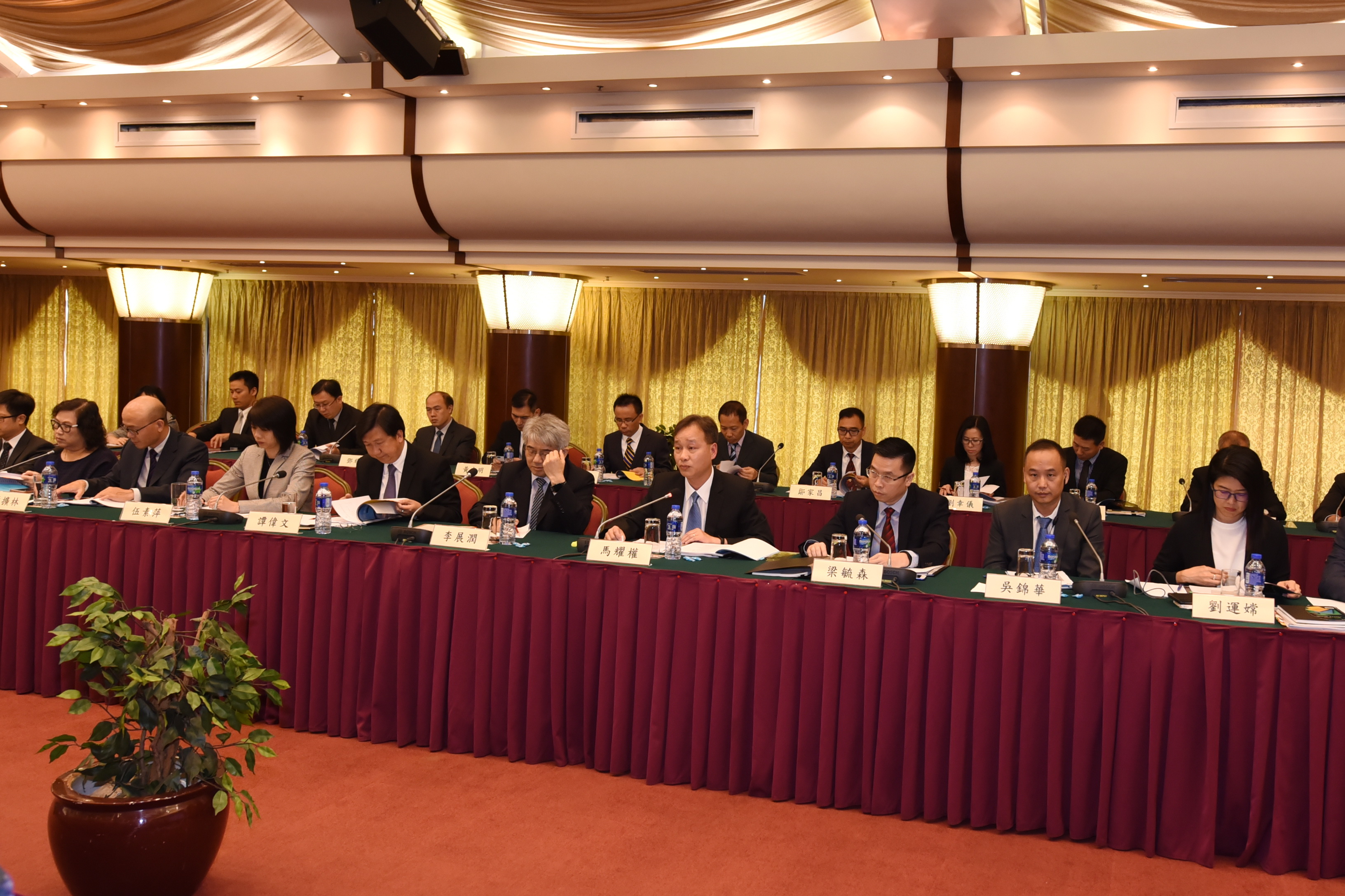「粵澳應急聯動機制專責小組第八次會議」今(一日)下午假澳門世界貿易中心蓮花廳舉行,廣東省政府副秘書長劉洪以及警察總局局長馬耀權,分別率領廣東省及澳門多個相關政府部門組成的代表團參與會議。
