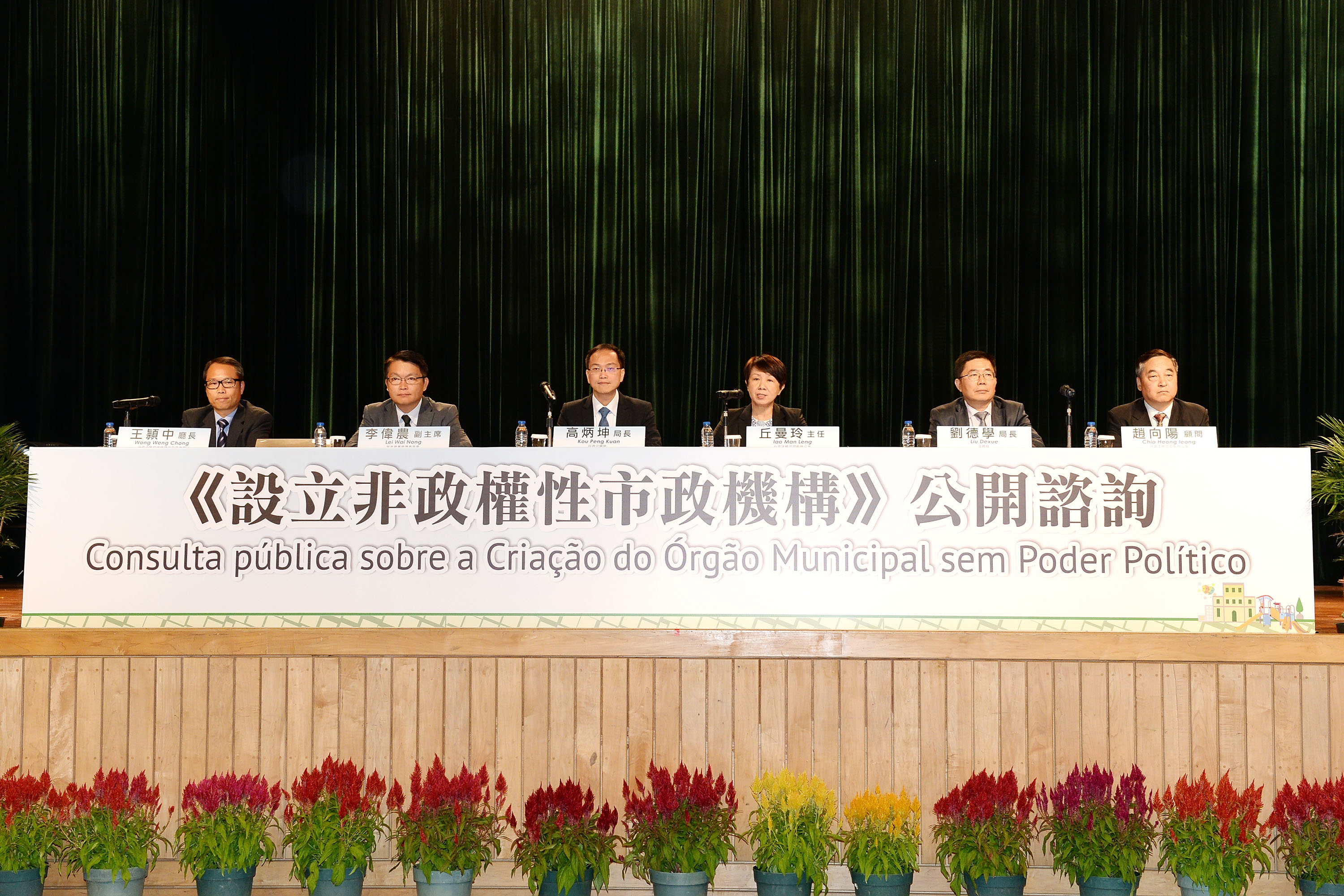 特區政府就設立非政權性市政機構,於10月25日至11月23日展開為期30日的公開諮詢,於諮詢期內舉辦3場諮詢會,其中2場對象為全澳市民,1場為本澳諮詢組織。
