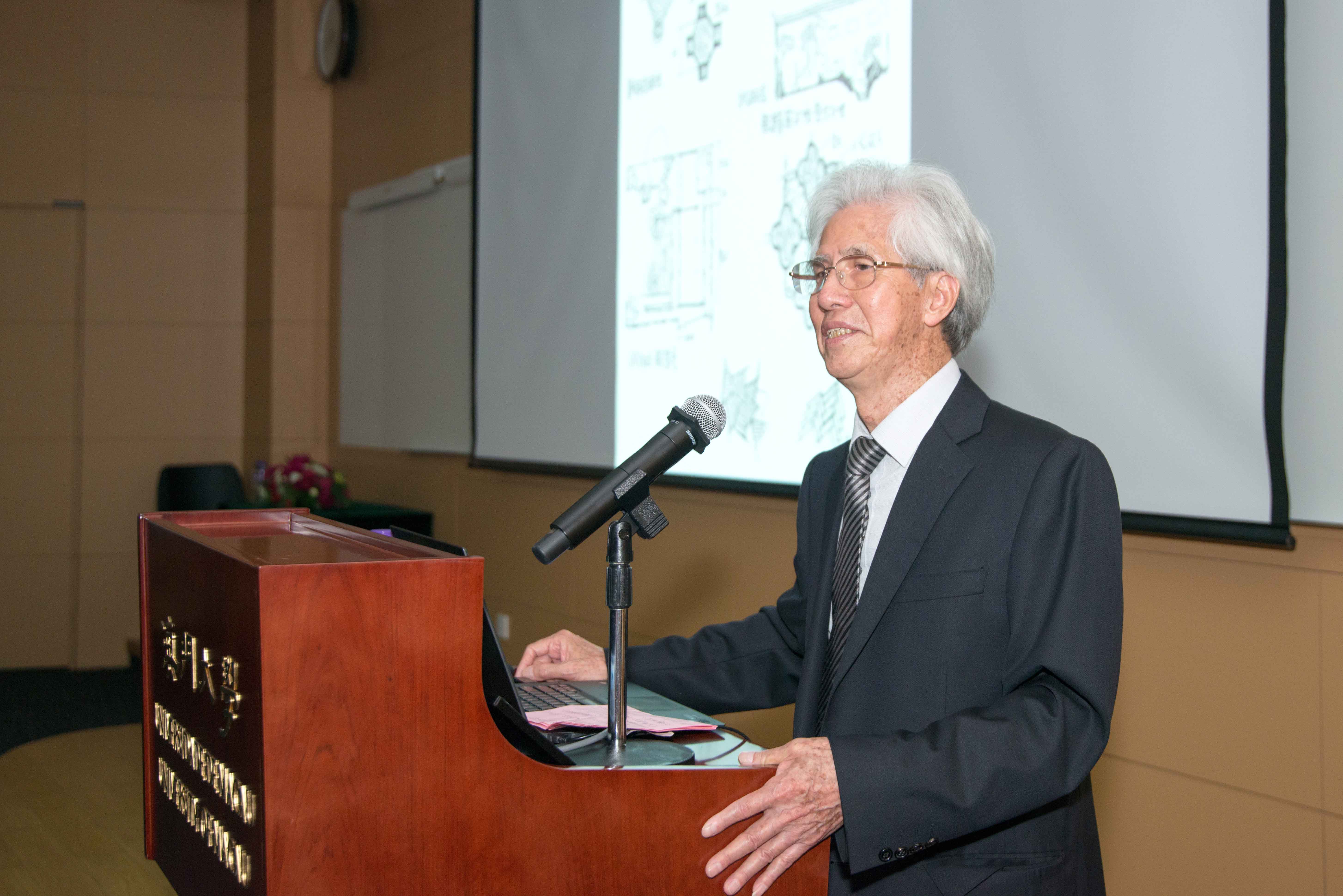 澳大科技學院院長陳俊龍致辭時感謝何鏡堂為澳大校園作總體規劃及設計,構建出環境優美、清幽舒適的一流校園,優化了澳大師生及教職員的教學與工作環境,進一步實踐澳大在推動精品本科教育、優秀師資團隊、卓越科研和高效環保的辦學理念,讓世界知道澳門有一所那麼美麗及優秀的校園。