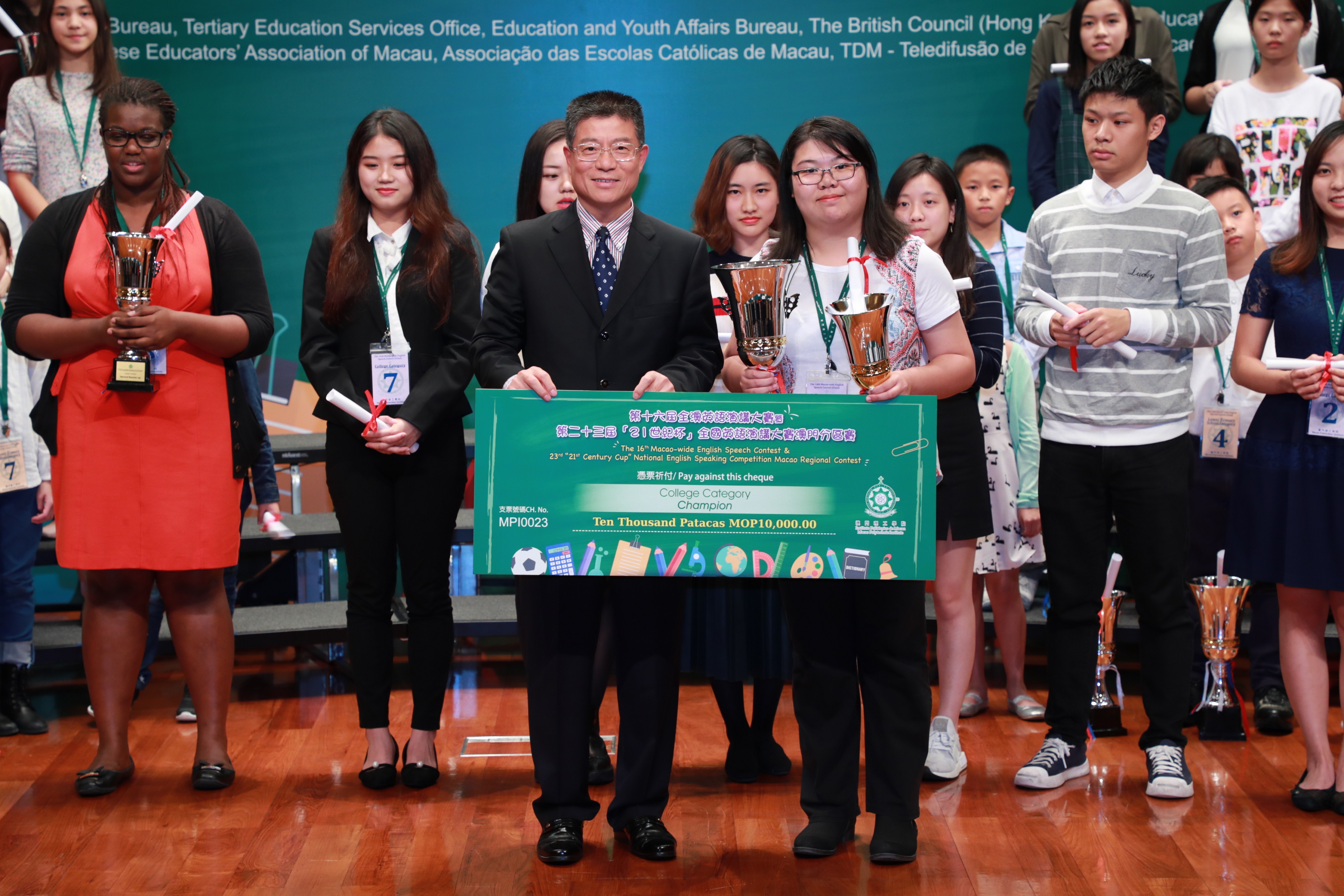 本屆頒獎典禮主禮嘉賓有:中央人民政府駐澳門特別行政區聯絡辦公室教育與青年部部長代表岑嘉儀副處長、澳門理工學院李向玉院長、教育暨青年局教育研究暨教育改革輔助處黃逸恆處長、行政公職局公務人員培訓中心培訓活動組織處黃華欣代處長、澳門日報林保華副總編輯、澳門天主教學校聯會陳文彬副理事長、澳門中華教育會楊珮欣常務理事、澳門廣播電視股份有限公司英文電視新聞科馬天龍經理、澳門理工學院鄭妙嫻秘書長、第十六屆全澳英語演講比賽暨第二十三屆「21世紀杯」全國英語演講大賽澳門分區賽澳門理工學院組委會執行主席林子予教授以及多所高等院校代表等出席。