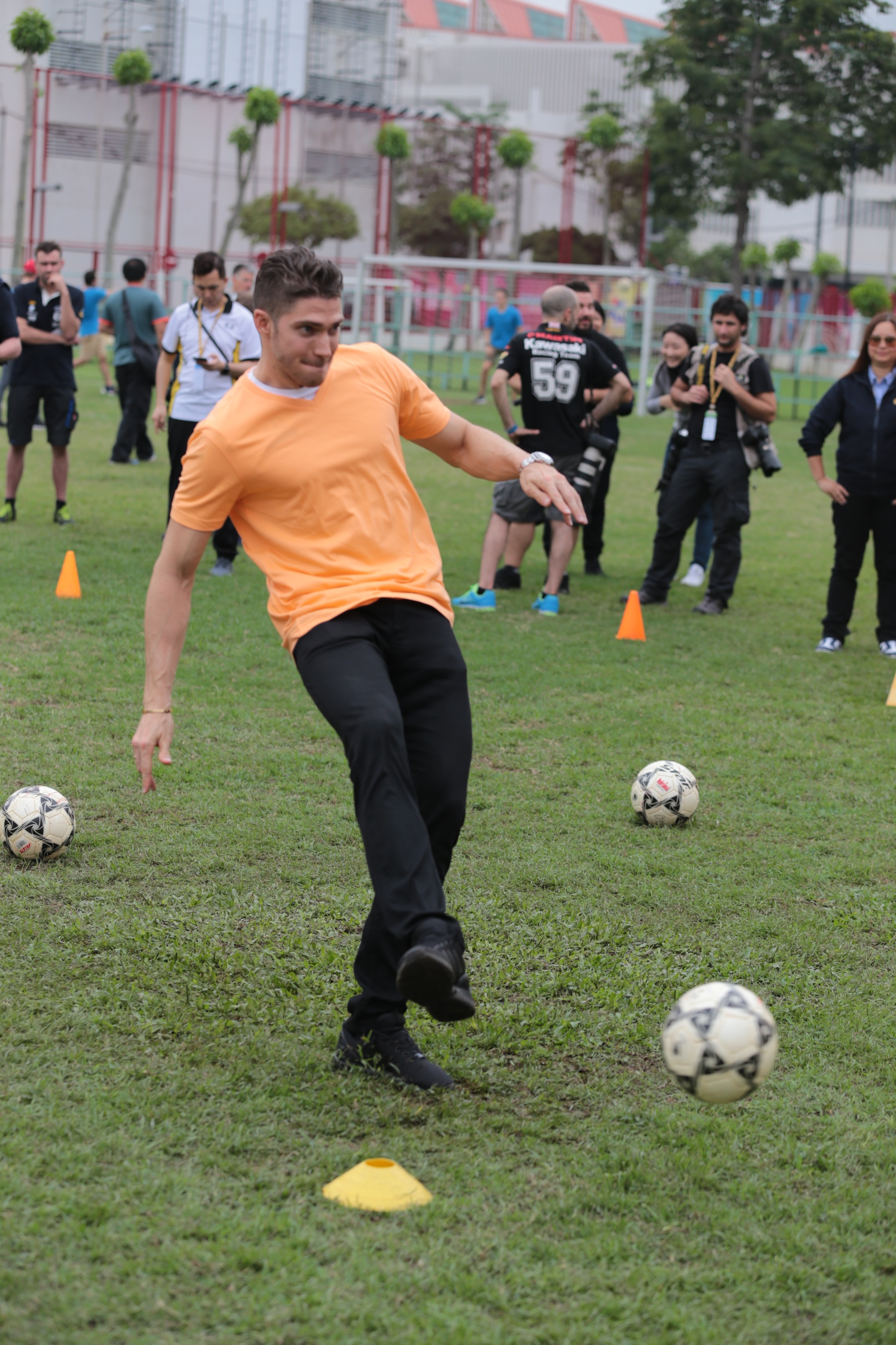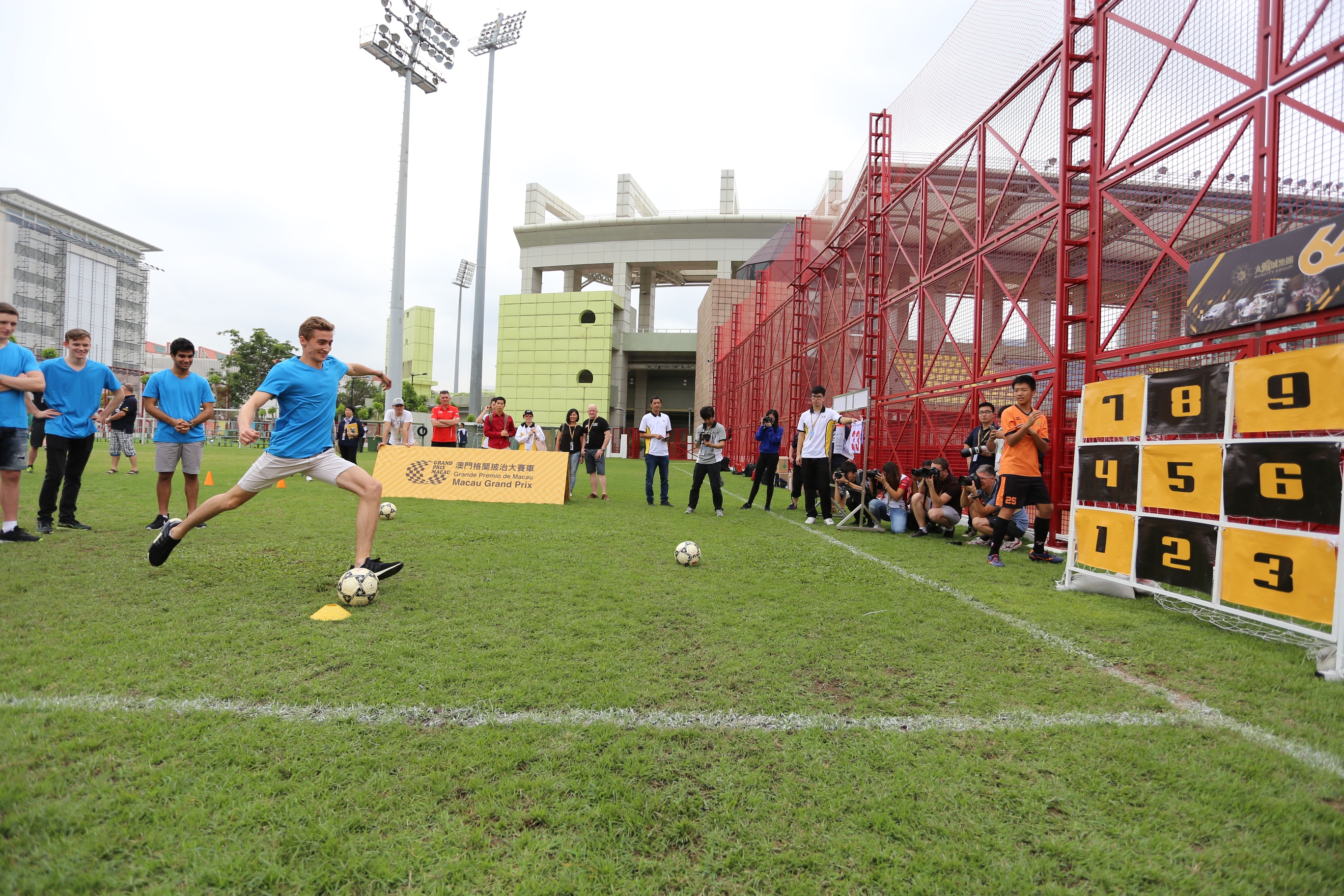 在「太陽城集團第64屆澳門格蘭披治大賽車」前夕,四大主要賽事的一眾車手從賽道轉戰球場,與澳門的學生在奧林匹克體育中心進行射球友誼賽。