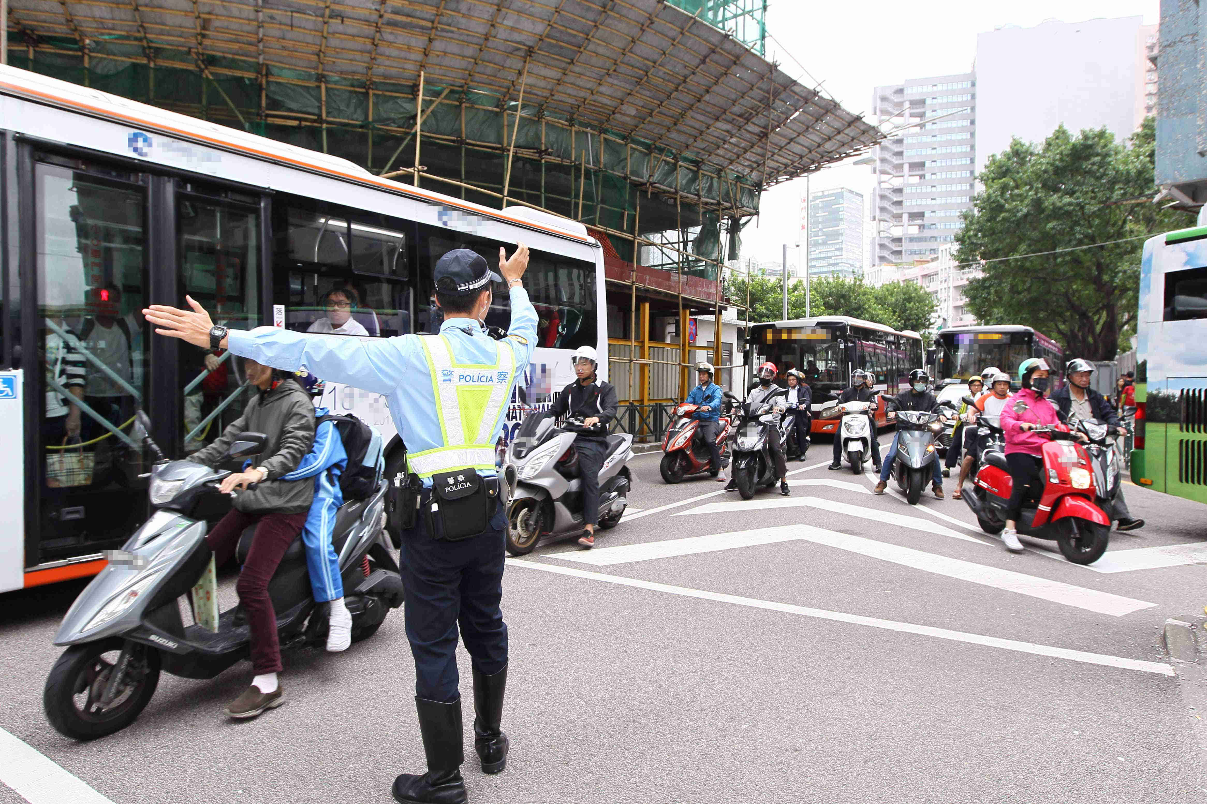 因應今(16)日大賽車進行賽前練習,本澳有多條道路及巴士路線實施臨時改道及交通管制措施,在上學上班期間俾利喇街、美副將大馬路、士多鳥拜斯大馬路至水塘馬路一帶行車較緩慢。治安警察局加派交通警員於各個繁忙路段指揮及疏導交通,同時亦抽調各部門內勤人員於北區至中區一帶及學校周邊繁忙路段進行疏導。總結本澳於大賽車首日交通雖繁忙但車輛仍有序行進,治安警察局會持續關注大賽車期間市面交通情況及加強繁忙路段的監控及調度工作。