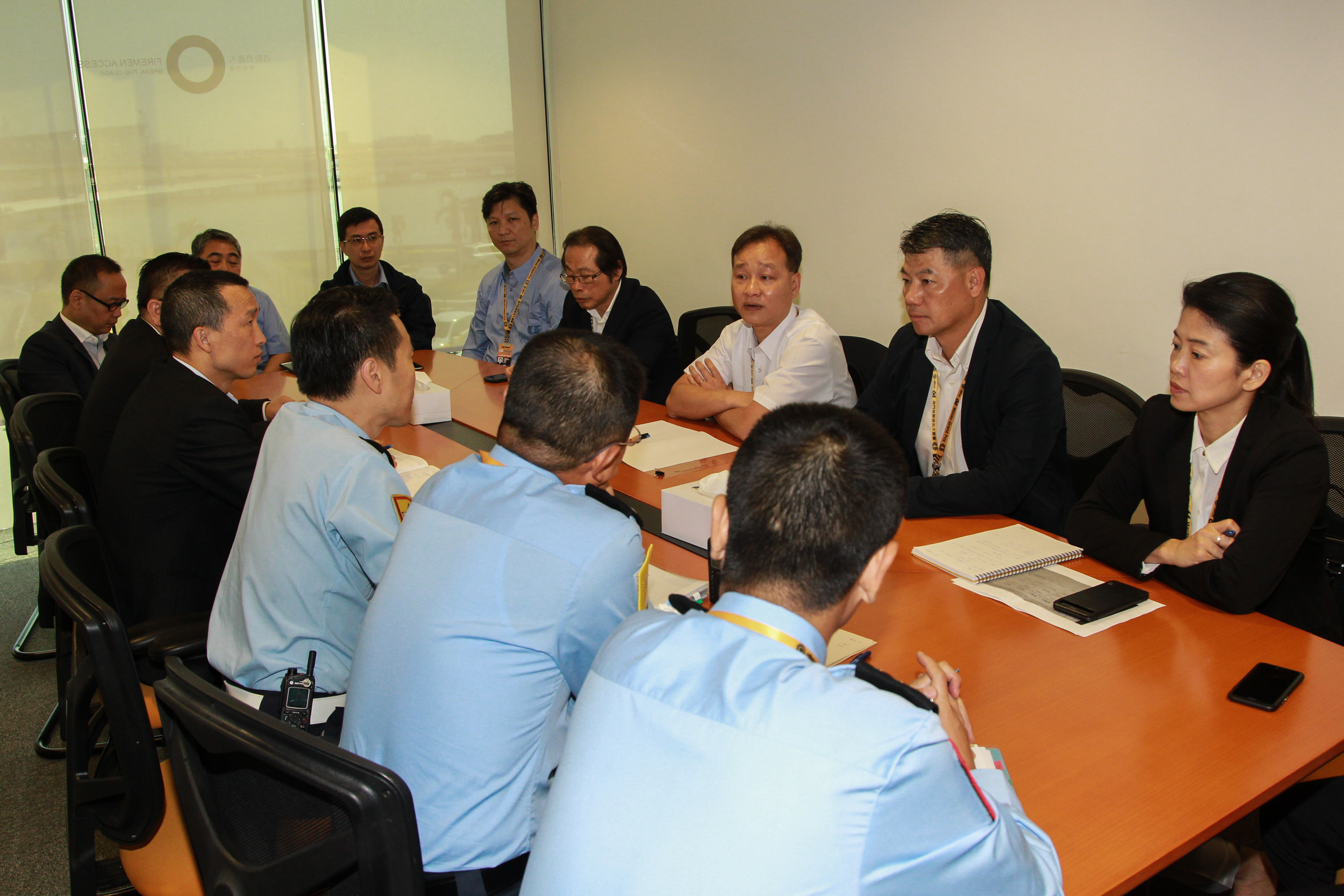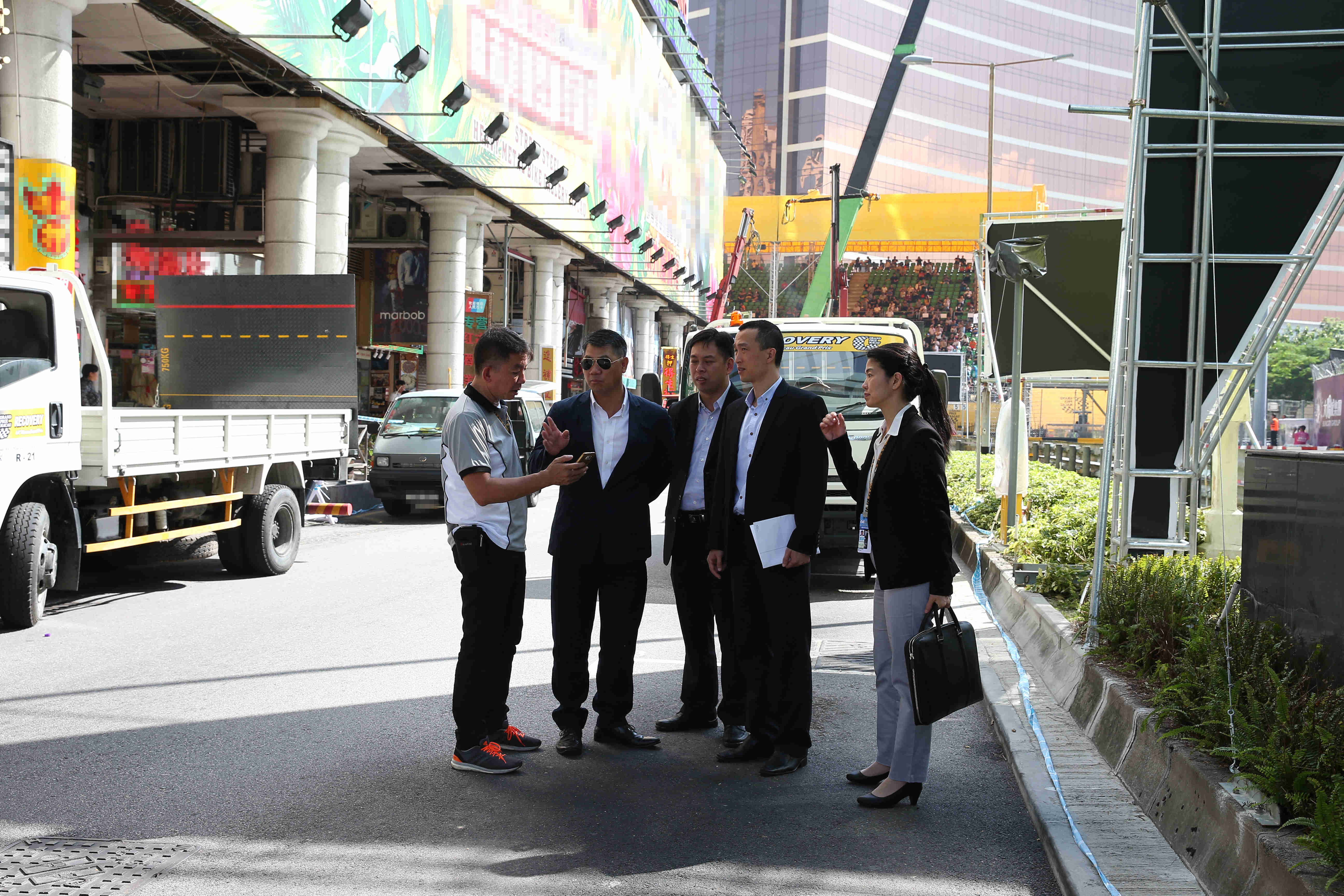 今日上午,警察總局馬耀權局長到格蘭披治賽車大樓聽取治安警察局梁文昌局長、各領導主管及大賽車保安工作負責人的工作報告並作出指示,以及聯同大賽車組委會協調員潘永權局長、治安警察局梁文昌局長等一眾負責人巡視了各項設施,為現場工作人員打氣。梁文昌局長與各領導主管亦到賽道周邊巡視,了解人流及車流情況。