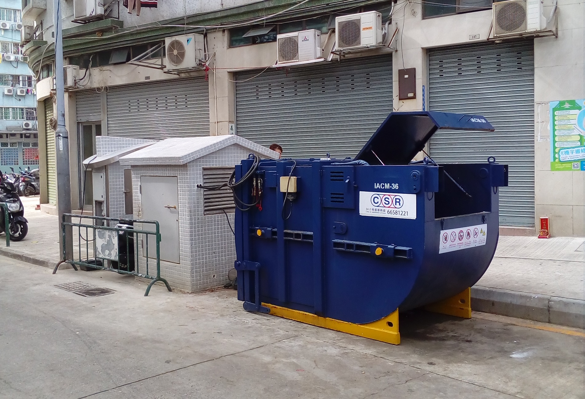 為此,民署引入了小型分體式壓縮桶,在使用及功能上,與本澳現時普遍使用的壓縮式垃圾桶無異,其體積約為現時一般壓縮桶的二分之一,兩者同樣具有壓縮功能,能將垃圾壓縮密封儲存於桶內,可提升垃圾收集設施容量,減少垃圾外露、臭味散發及污水流溢等衛生問題;不同之處在於小型分體式壓縮桶的設計,其垃圾儲存室與液壓泵分離設置,減少了整體壓縮式垃圾桶的體積,使設置分體式壓縮桶所佔用的空間也相應減少,令更多位於狹窄街區的垃圾站亦具條件進行優化工作。