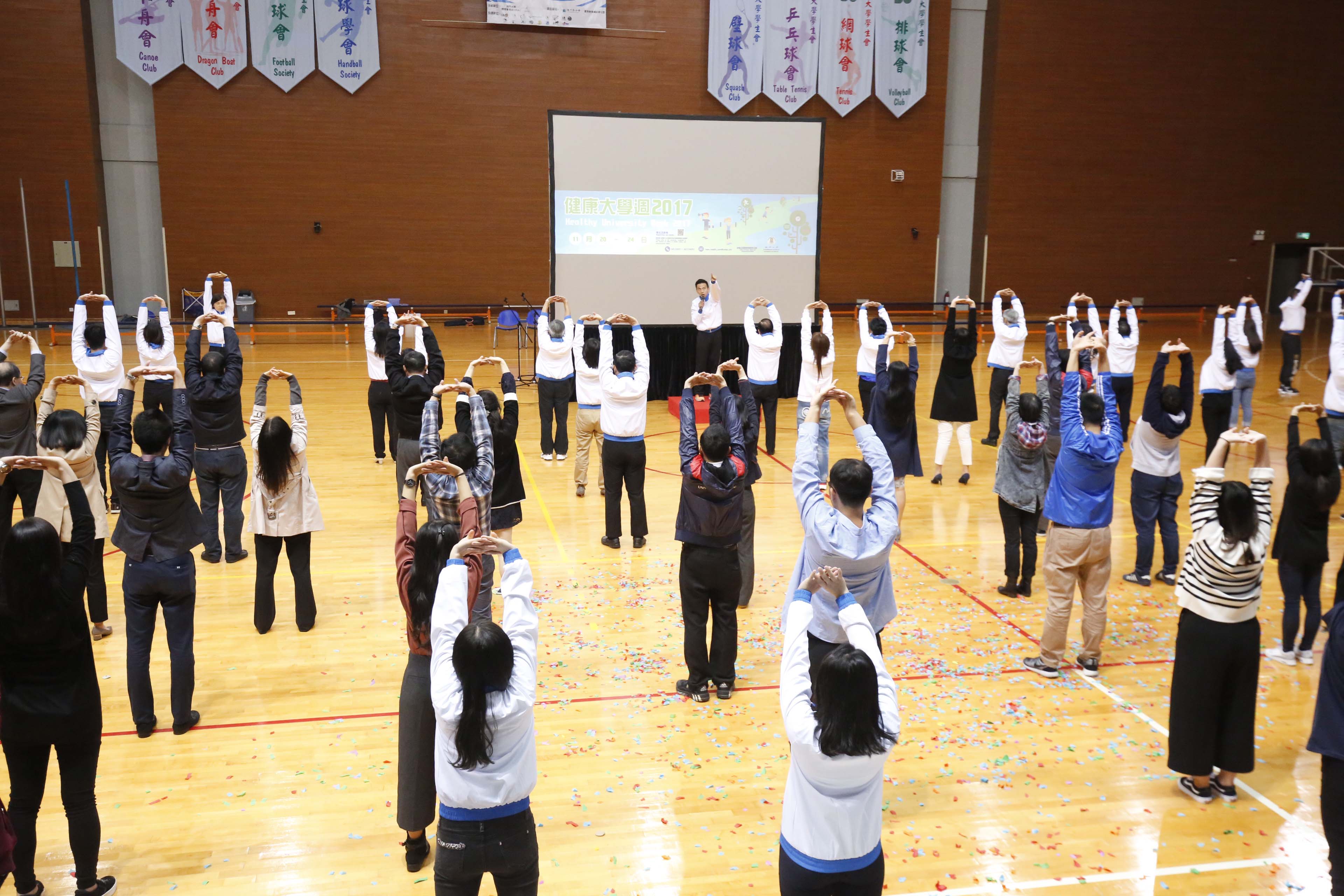 今年健康大學週啟動儀式上,舉行了“減脂大作戰"頒獎儀式,也有精彩的歌唱表演、健康操及攤位遊戲等。另外,本週還設有健康校園嘉年華、環保電影欣賞、預防運動創傷工作坊、“時尚運動趨勢"講座、流感疫苗注射等活動,以輕鬆及有趣的方式讓全校師生及教職員吸收健康、安全及環保訊息。
