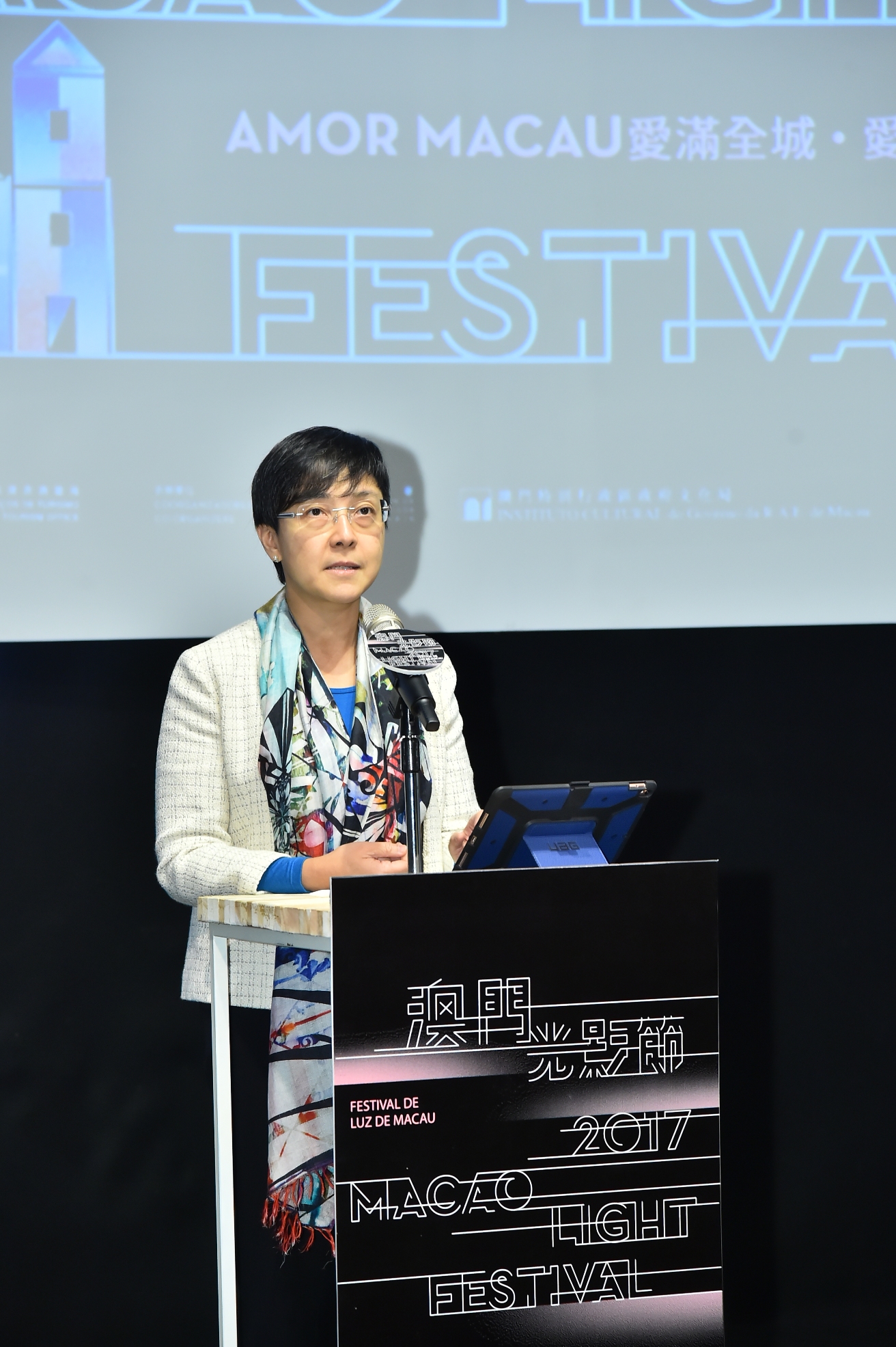 旅遊局今(22日)在澳門設計中心舉行記者招待會介紹節目內容。旅遊局局長文綺華、副局長謝慶茜及程衛東、文化局副局長楊子健和體育局副局長林蓮嬌等出席了記者招待會。文綺華致辭時表示,旅遊局與本澳文創單位─澳門設計中心合力打造今年的澳門光影節,將會是全澳門創作人組成的製作團隊,希望集合本地創作人的構思,為市民和旅客帶來耳目一新的光影節。她又提到,今年的澳門光影節與澳門國際馬拉松於12月3日當天同日啟動,活動期將覆蓋“第二屆澳門國際影展暨頒獎典禮”、“澳門購物節”、“澳門國際幻彩大巡遊”、澳門特別行政區成立十八周年紀念日、聖誕節假期和除夕夜,務求將旅遊結合文化、體育活動及盛事的協同效應覆蓋整個12月,營造節慶盛事氣氛。