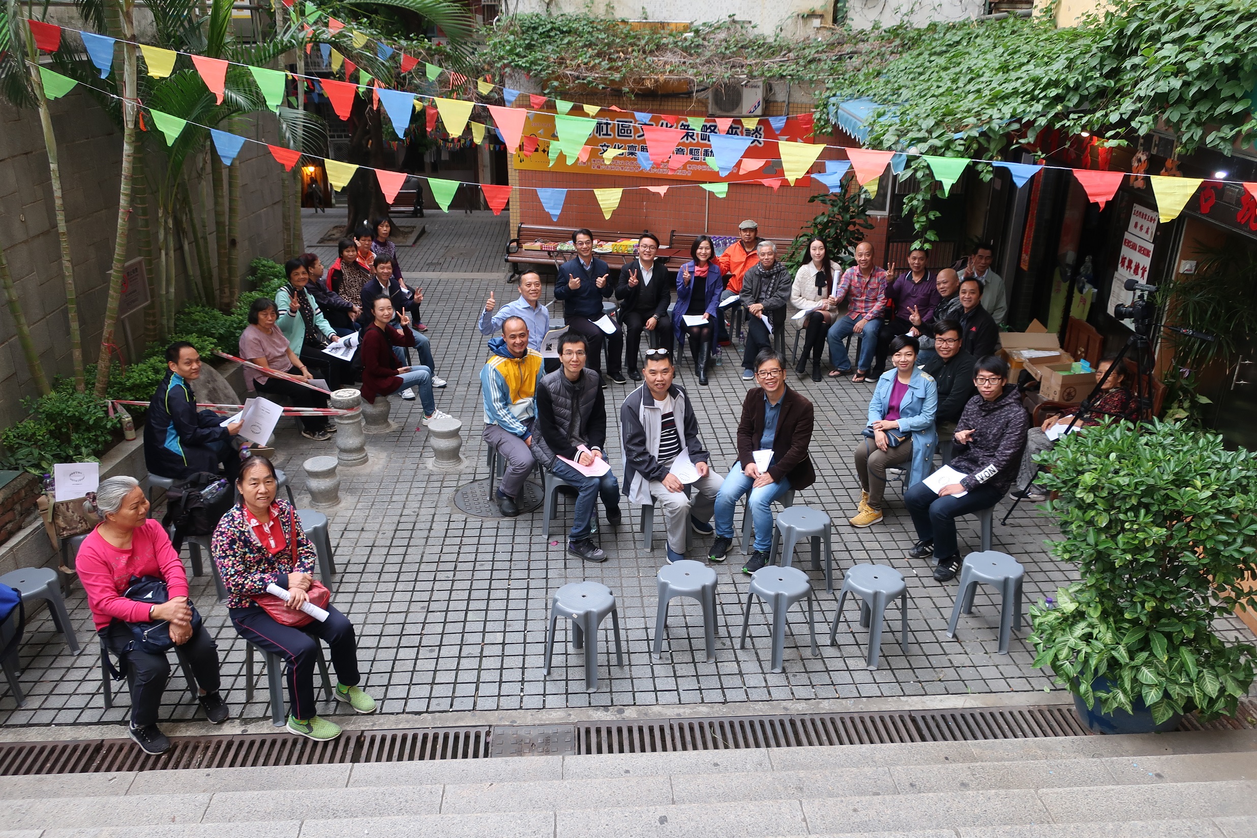 座談會由果欄六街區坊眾互助會尹一衛會長主持,蒞臨嘉賓包括有文化產業基金行政委員會主席梁慶庭、澳門中區南區工商聯會理事長胡玉沛、草堆六街區坊眾互助會理事長盧定淦、 澳門文化藝術學會會長趙維富等;許多街區民眾到場參加。