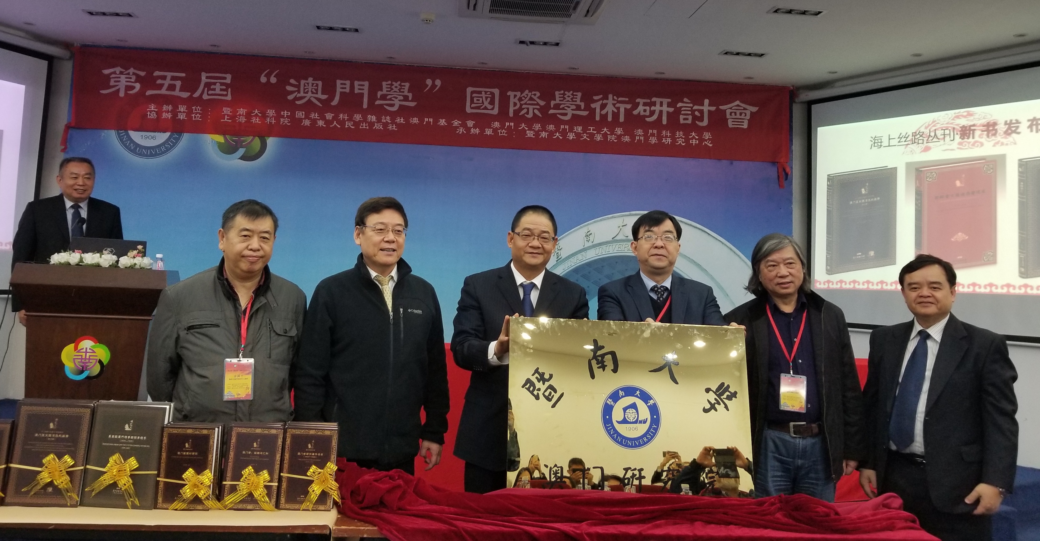由中國社會科學雜誌社、暨南大學、澳門基金會、澳門大學、澳門理工學院及澳門科技大學聯合主辦,暨南大學文學院澳門學研究中心承辦的“第五屆澳門學國際學術研討會”於11月25日在暨南大學校友樓開幕。研討會邀請來自世界各地七十位專家學者圍繞“澳門學與早期全球化浪潮”、“澳門學與澳門精神”、“澳門學與澳門發展道路”三大主題,共同探討澳門學與澳門發展。