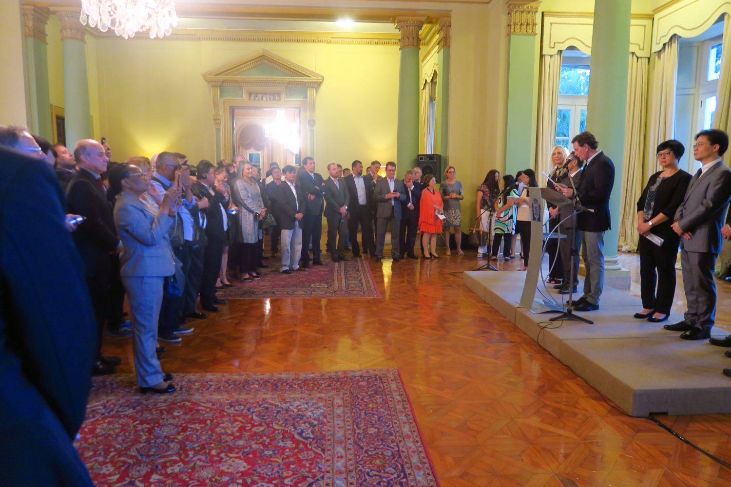 由中國與葡語國家經貿合作論壇常設秘書處及澳門貿易投資促進局分別組織的代表團在抵達巴西里約熱內盧後,出席了由里約熱內盧市政府、中葡論壇常設秘書處及貿促局共同主辦,中華人民共和國駐里約熱內盧總領事館支持的“中國-巴西企業經貿交流酒會”。