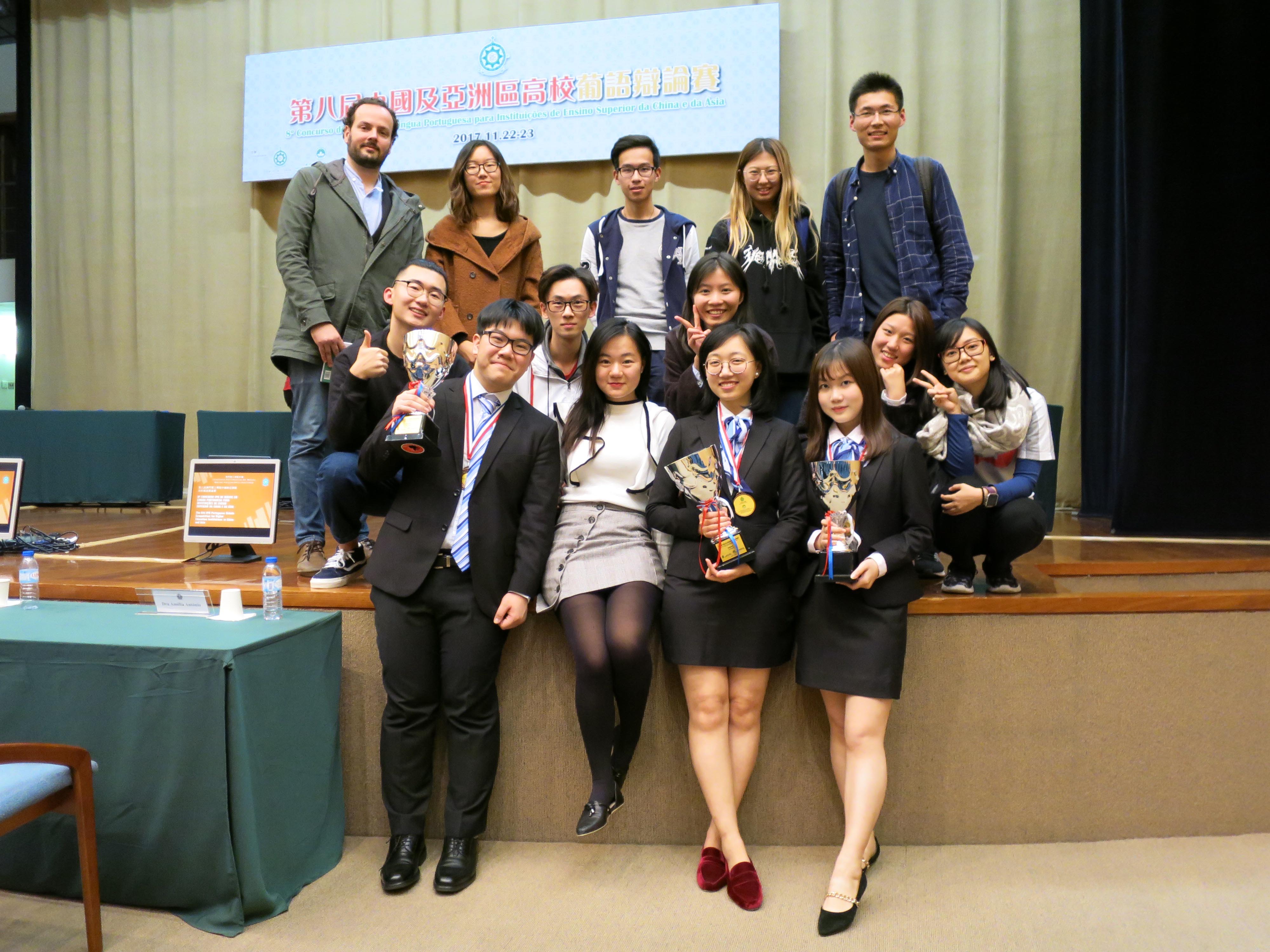 人文學院葡語研究二年級、榮譽學院、鄭裕彤書院的唐佳璇,人文學院葡語研究四年級、榮譽學院、呂志和書院的衡奕及法學院法學(中、葡雙語授課)四年級、蔡繼有書院的梁建民在十二支參賽隊伍中脫穎而出,奪得季軍。