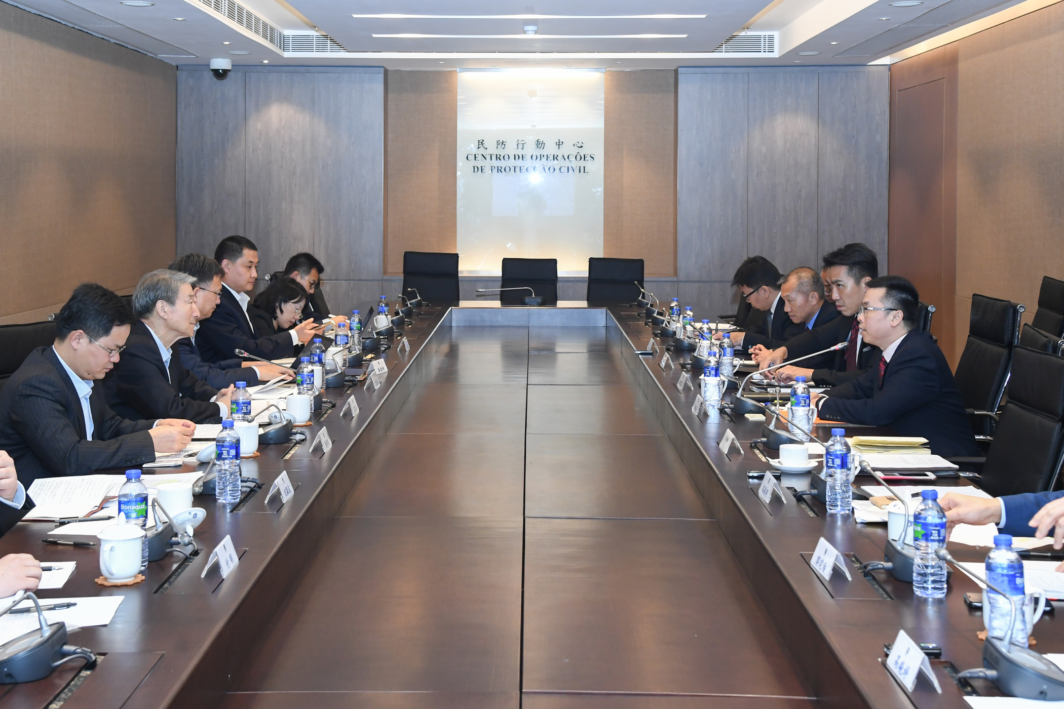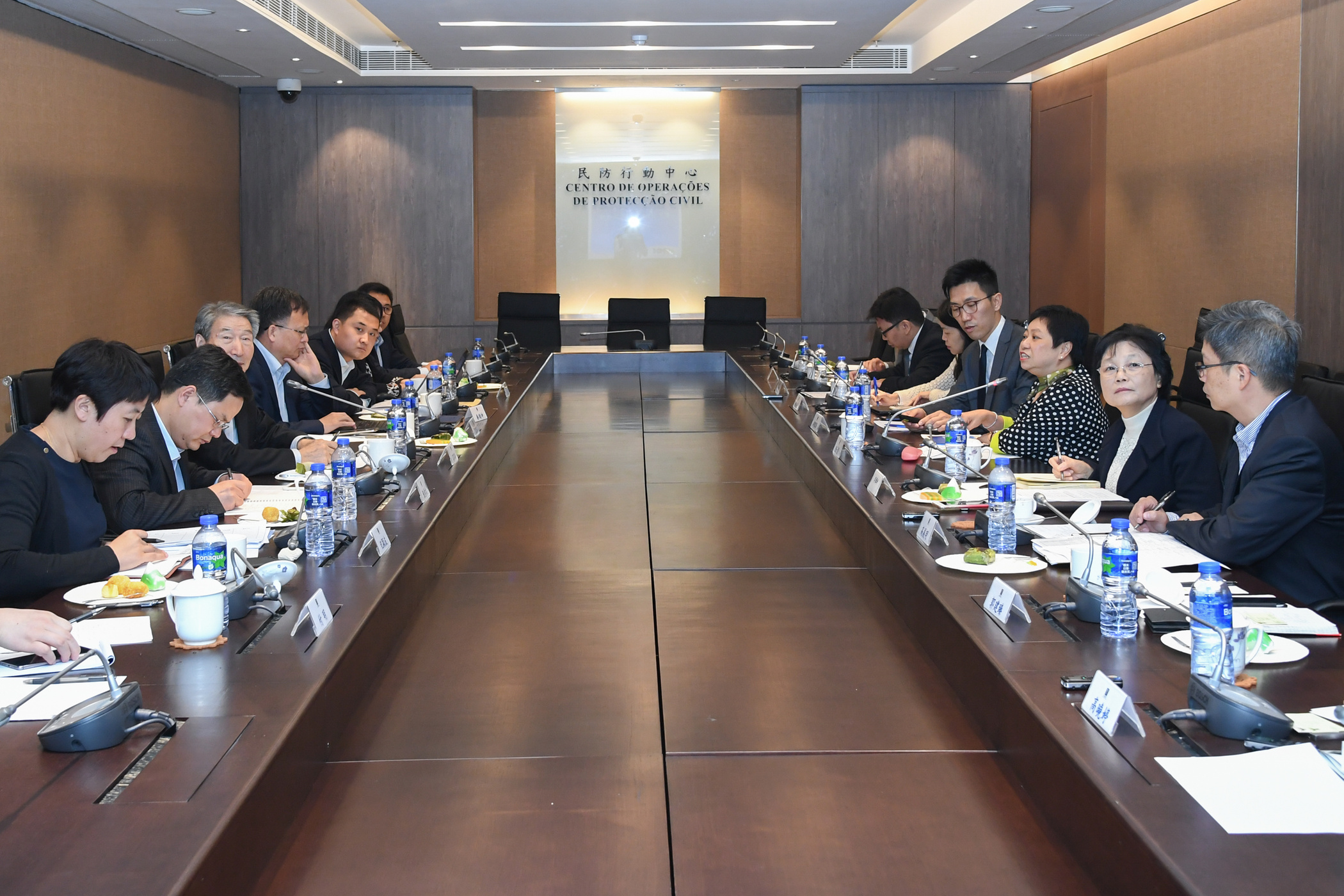 教授團隊下午分組與民防中心、消防局、經濟局、地球物理暨氣象局、環境保護局和土地工務運輸局的領導代表交流,就澳門的應急管理、城市公共安全、消防總體情況、災後經濟補助和扶持中小企政策、氣象預測技術、自然災害突發環境事件的處理能力、城市發展規劃、防洪排澇和防護措施等議題,聽取介紹及交換意見,重點為優化澳門應急管理體系進行基礎調研。