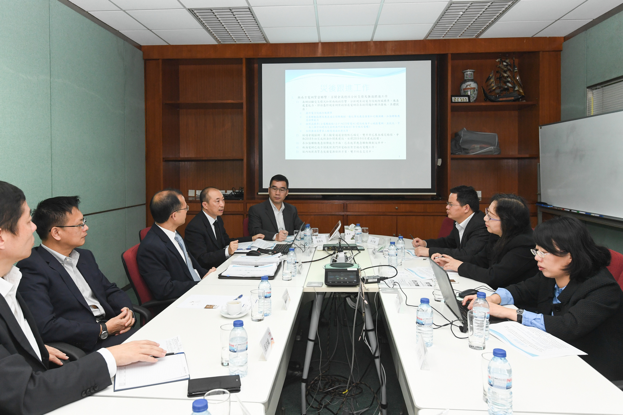 教授團隊上午分組與多個部門機構跟進調研工作,分別與郵電局、科學技術發展基金、社會工作局、海事及水務局、能源業發展辦公室和澳電的領導代表座談交流,就應急通信體系建設、應急管理科普教育、民間救援力量的協調、供電應急預案、供水管網情況,以及防洪排澇基建等議題,聽取介紹及探討研究。行政長官崔世安下午與團隊一行會面。