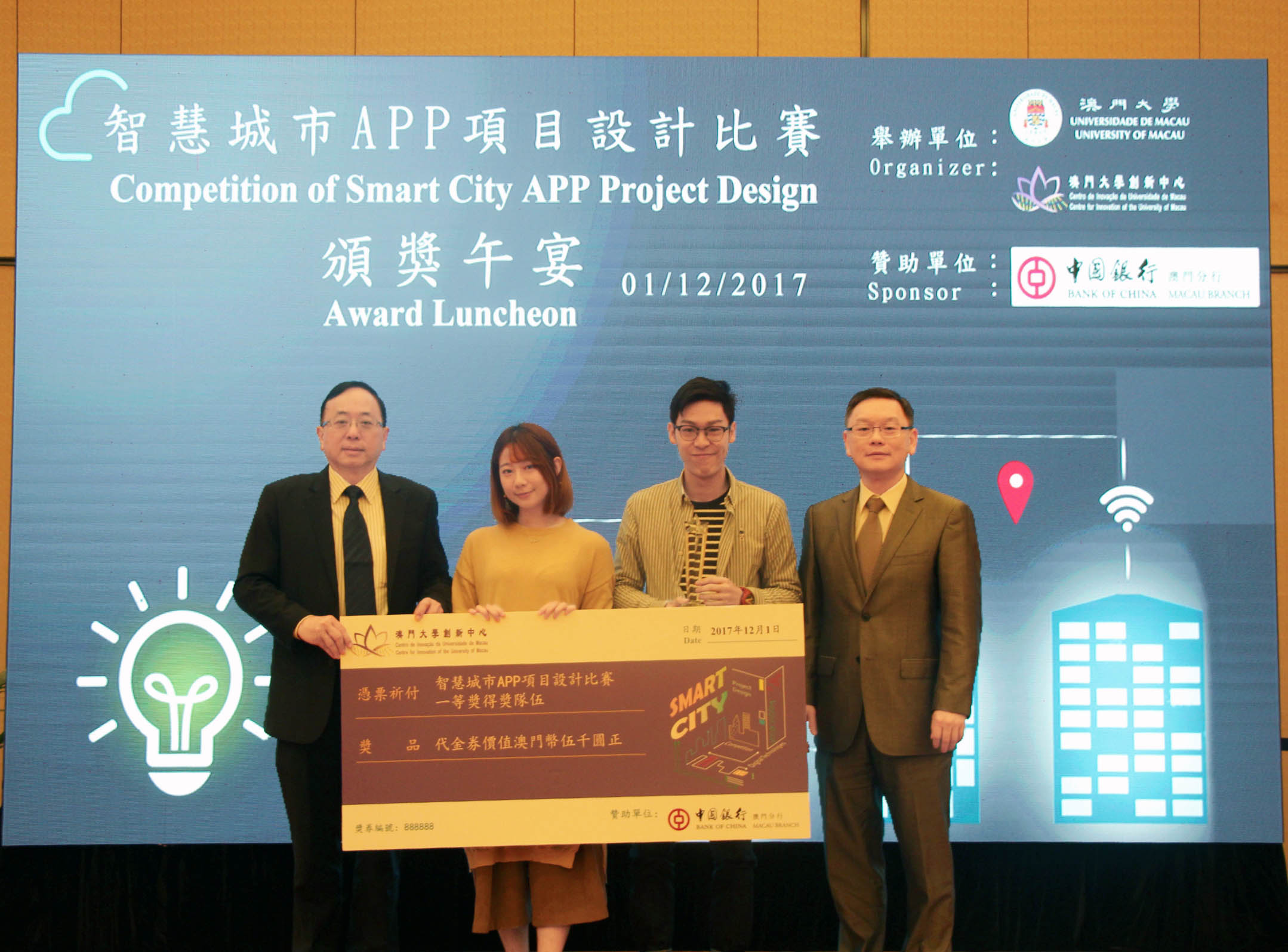 另外,澳門城市規劃學會會長崔世平、澳門科技發展基金行政委員會委員陳允熙和澳門智慧城市聯盟協會理事長黃承發出席典禮及致辭。是次比賽獲中國銀行澳門分行支持和贊助。