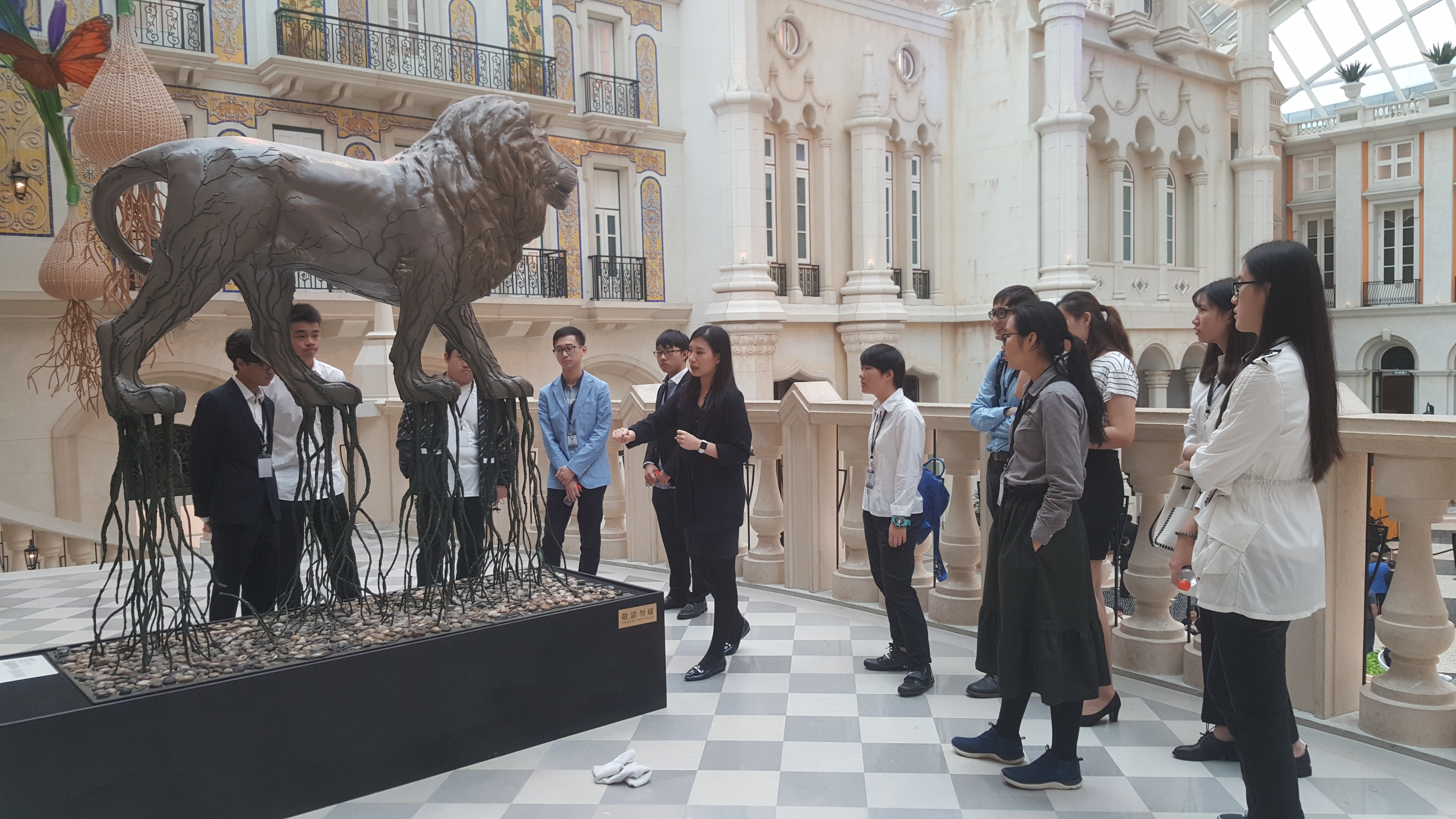 參觀行程主要包括澳門美高梅的天幕廣場及員工專區,特別講解員工培訓設施、行政部門辦公室、24小時營業的員工餐廳及便利商店、醫療及保險服務、制服自動收發系統等等。