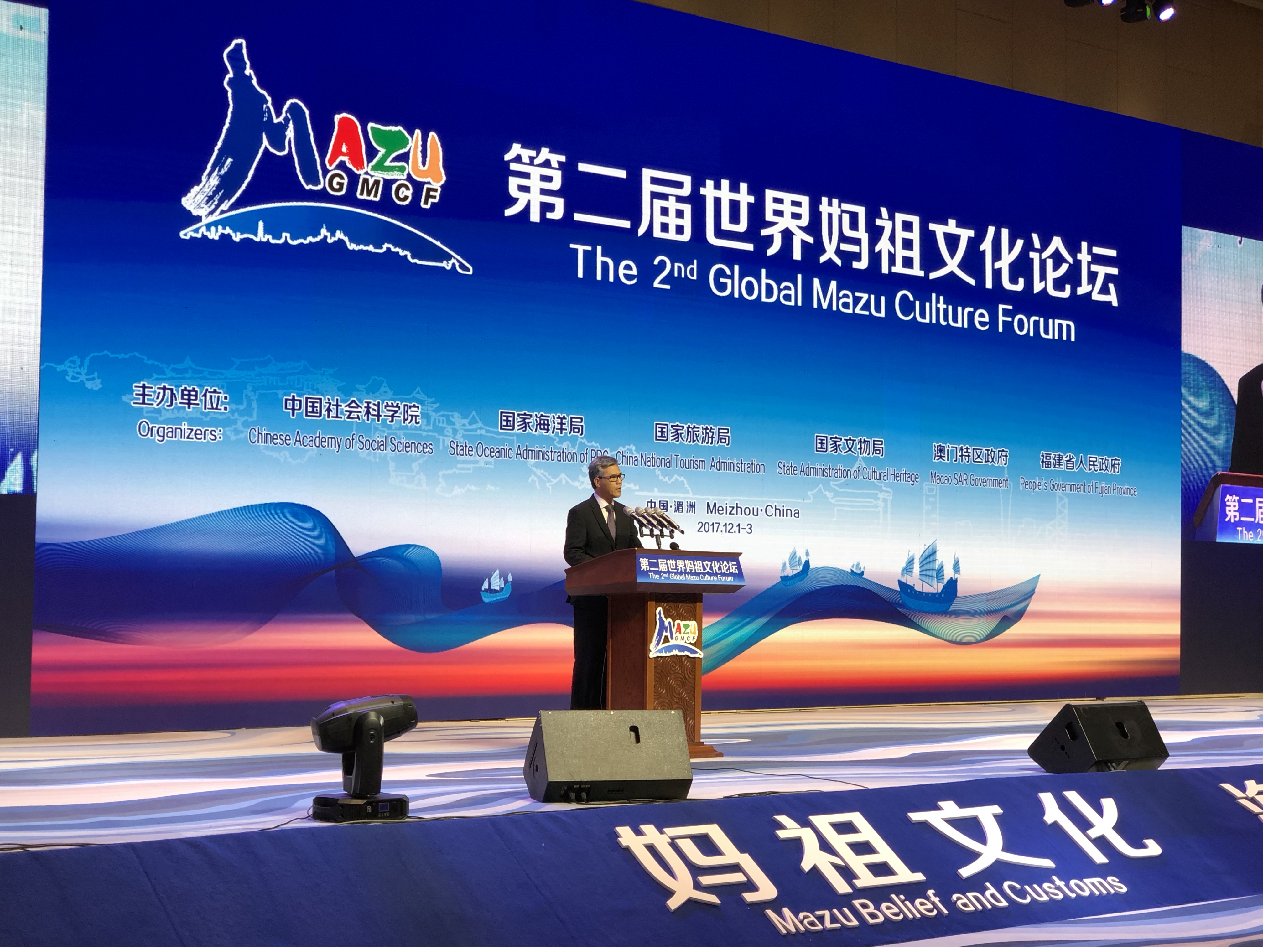 第二屆世界媽祖文化論壇設有五個分論壇,文化局邀請了澳門理工學院榮休教授譚世寶博士出席分論壇之一的第三屆國際媽祖文化學術研討會,並於開幕儀式上作主旨演講,而文化局文化遺產廳的學術人員亦在另一分論壇-"媽祖文化與海絲精神"國際研討會上發表有關論文,與來自24個國家及地區的參與者進行學術討論。