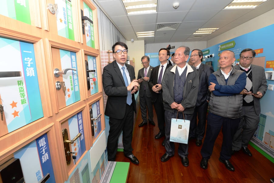 司警局會後啟用“防盜設施展覽室”,並邀請出席會議的嘉賓參觀。“防盜設施展覽室”內展示了各種日常使用的傳統及新型電子家居防盜設備,包括不同種類的門鎖、監控鏡頭、新式門禁系統等,司警局人員向嘉賓介紹各款家居防盜設備的功能及如何借助電子科技提升家居保安的安全性。司警局將開放“防盜設施展覽室”,接待大廈防罪之友會員、社團會員及居民參觀,讓大家瞭解市面上常用的家居防盜設備及系統,如何正確使用家居防盜設備,保障人身及財產安全,警民合作打造堅固的社區防罪網。