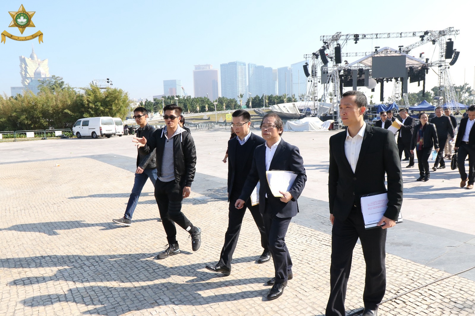 於今早(29日)警察總局羅偉業局長助理聯同消防局梁毓森局長、治安警察局黃子暉代局長、海關周見靄代助理關長,以及司法警察局、文化局、交通事務局及民政總署的代表,到西灣湖廣場及龍環葡韻進行實地視察,檢視各項警務措施安排,根據現場環境調整部署,確保各部門間緊密配合,令活動得以順利進行。除夕當晚,預計各倒數活動地點將吸引大量市民和旅客參與,治安警察局將增派軍裝及便裝警員,以及抽調內勤人員在多個倒數活動地點加強巡邏及維持秩序,並針對各繁忙路段加派警員指揮及疏導交通,確保交通秩序。