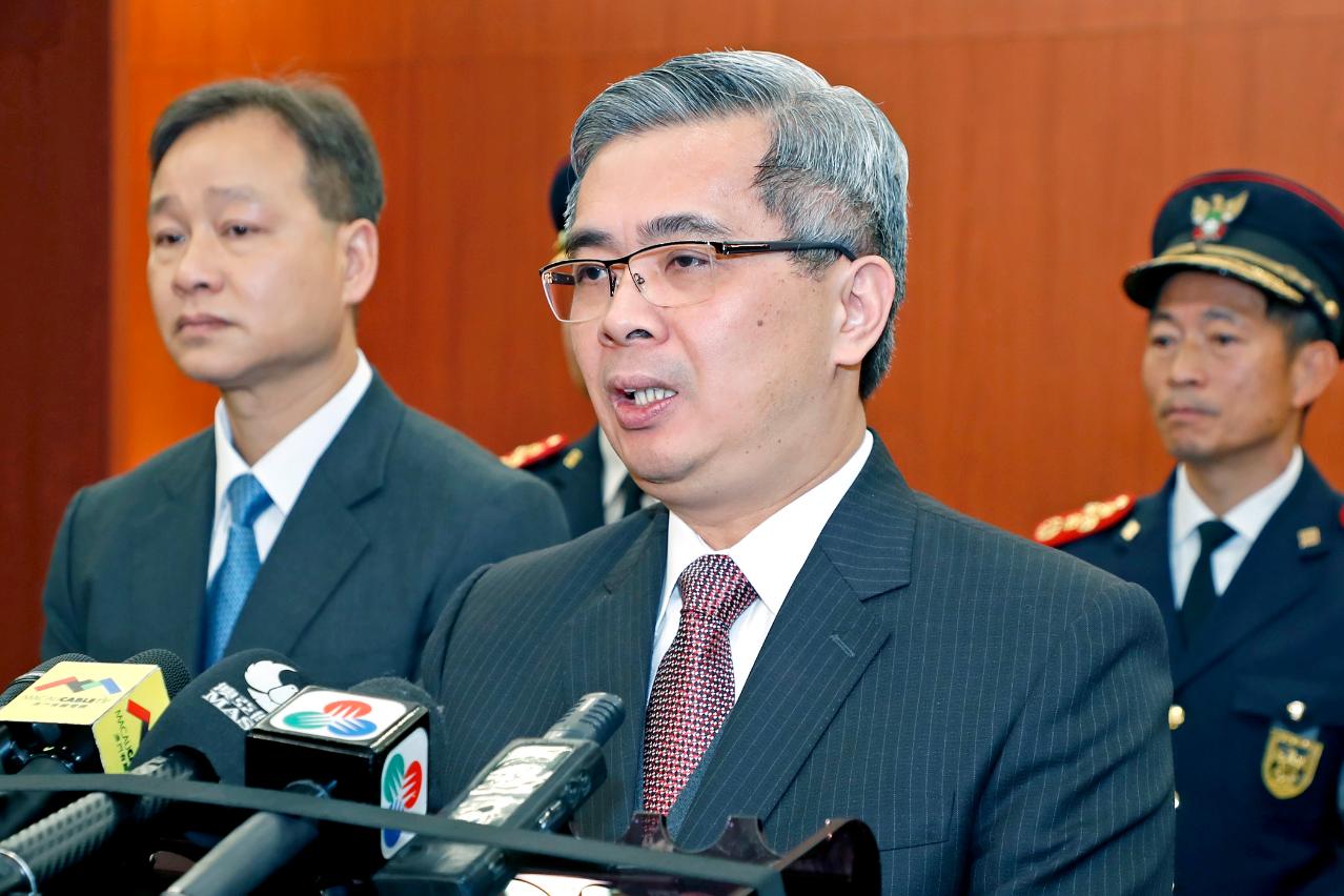 黃少澤今日在主持司法警察局薛仲明局長就職儀式後接受傳媒訪問。他表示,“天鴿”颱風是澳門有紀錄以來最強者,澳門受到重創,特區政府高度重視,保安範疇根據行政長官的指示,隨即開展系列工作,制定短、中、長期的計劃。短期計劃的工作有多方面已完成或正在跟進中,主要是應急層面方面,包括硬件的添置及緊急應對撤離計劃的草擬等;中期計劃主要是立法方面的工作,預計下周可提請行政長官就民防綱要法進行立法計劃,屆時將訂立民防如何共同應對自然災害、其他公共安全或衛生事件,以及設立民防應急協調局。對於在颱風及災難期間散播謠言的犯罪行為,在法案中也建議加重三分之一的刑罰幅度。