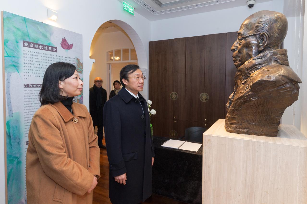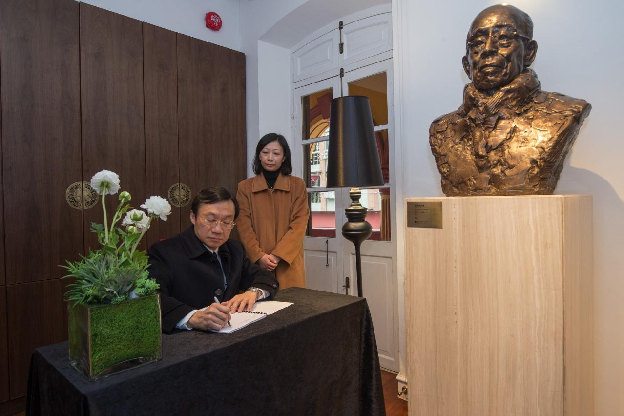 文化局今天起在饒宗頣學藝館設立吊唁冊供公眾悼念一代國學大師。上午九時,社會文化司司長譚俊榮到學藝館,他在吊唁册上寫道:“國學大師饒宗頤先生治學勤勉,博學,深深影響後世文人學子。願饒公精神不朽!"譚俊榮又與在場的文化局局長穆欣欣等參觀館內陳設,回顧學藝館開幕時的盛况,共同緬懷饒宗頤先生的事蹟與貢獻。