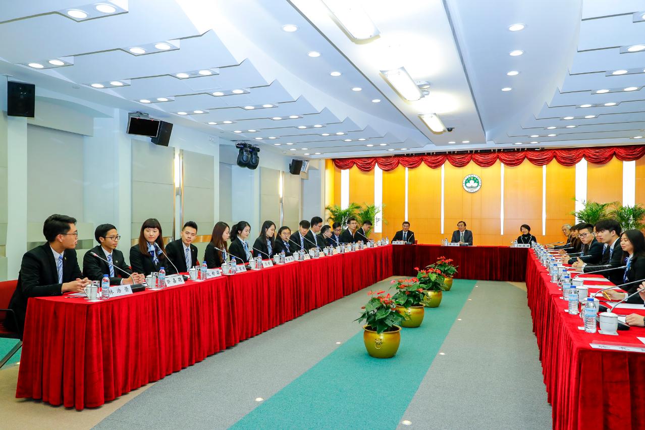 學生會領導機關成員二十四人在澳大學生事務長彭執中及學生發展處特別顧問周桂慈的陪同下前往社會文化司拜訪,獲譚俊榮接待。大會主席楊文賢、理事長歐陽銘聰、監事長鄭筠霖及各成員先後自我介紹,譚俊榮表示很高興會內成員來自不同地區,能促進不同文化互相交流,並讚揚澳大兩文三語的成效。