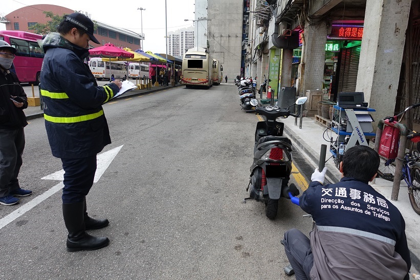 交通事務局與治安警察局組成的工作小組2017年進行了99次車輛尾氣排放路檢工作。配合《在用車輛尾氣排放污染物的排放限值及測量方法》行政法規實施,下半年路檢增加抽檢在用摩托車、汽油汽車及天然氣車輛,連同交通事務局派員到各車廠抽檢巴士,全年合共抽檢906台車輛,合格率88%。