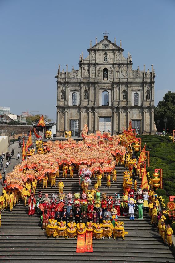 旅遊局聯同民政總署於農曆新年大年初一(16日)率先在大三巴牌坊前及議事亭前地舉行新春慶祝活動,與澳門市民和旅客歡度春節。