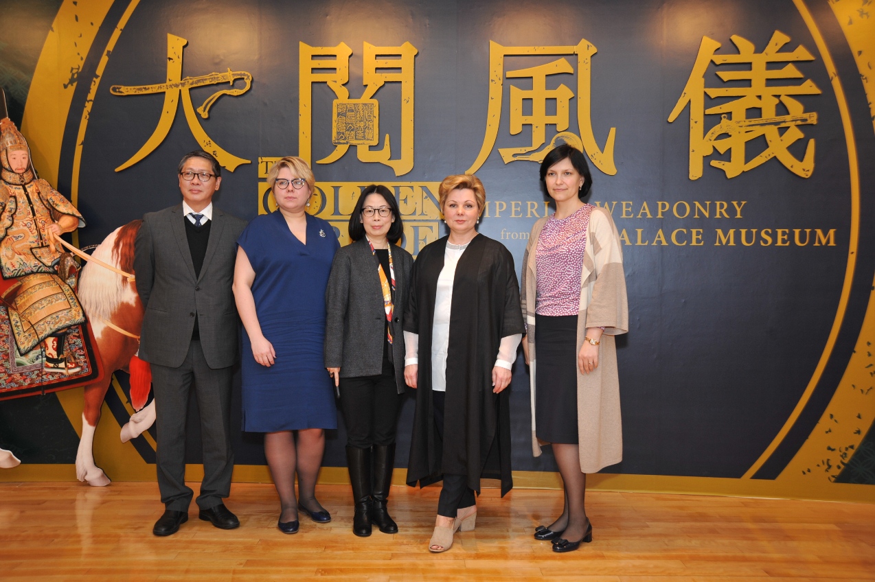 應文化局的邀請,俄羅斯莫斯科克里姆林宮博物館(Moscow Kremlin Museums)總館長伊琳娜•加加琳娜(Elena Yurievna Gagarina)及在國際和展覽部主管葉卡捷琳娜•卡拉瓦耶娃(Ekaterina Karavaeva)及俄羅斯駐港澳副總領事妮娜•納魯特金諾娃(Nina Narutdinova)陪同下,於今(二月二十六日)日訪問文化局轄下澳門藝術博物館、澳門回歸賀禮陳列館及澳門博物館,受到副局長楊子健、文博廳廳長李麗嬌、澳門藝術博物館館長陳繼春及澳門博物館館長呂志鵬熱情接待。